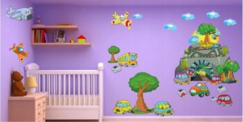 Veselá nálepka na stenu pre chlapčeka do detskej izby autá a lietadlá 60 x 120 cm