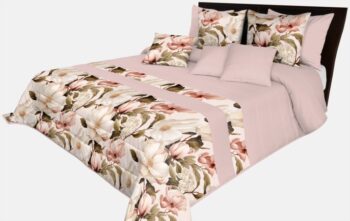 Prehoz na posteľ v púdrovo ružovej farbe s jemným vzorom pivónii Šírka: 170 cm | Dĺžka: 210 cm