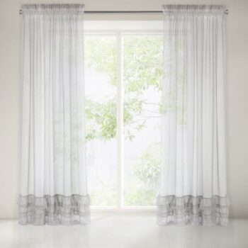 Luxusná sivá záclona na riasiacu pásku s francúzkymi volánmi 140 x 270 cm