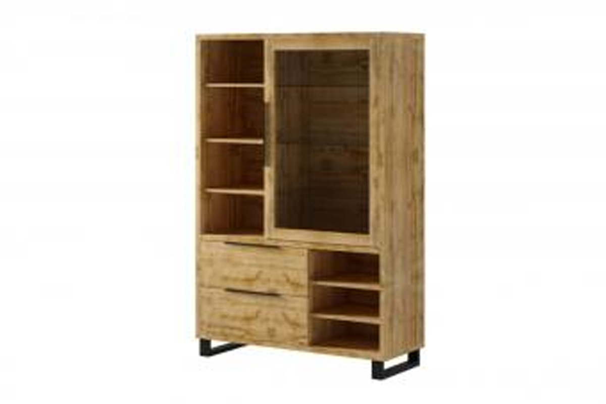 Sektor HELL svojím netradičným a zároveň elegantným dizajnom presvetlí každý moderný interiér.Originálne riešená a kombinovaná vitrína HELL 13 je v hornej časti po ľavej strane doplnená o tri odkladacie police, kde si môžete uložiť knihy alebo darčekové predmety. Dolná časť vitríny obsahuje dva menšie odkladacie šuplíky a police.Vitrína je vyrobená z kvalitnej LTD dosiek, ktorá sa ľahko udržiava.Farba vitríny je dub wotan, po stranách s čiernými kovovými nohami. Má elegantné úchytky z plastu čiernej farby.Rozmery:- šírka: 120 cm,- výška: 190 cm,- hĺbka: 45 cm.Vitrínu dodávame v demonte a jej montáž je jednoduchá.
