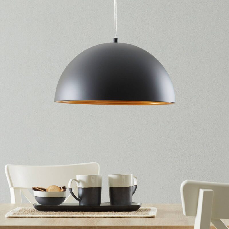 Závesná lampa Dingle s dvojfarebným tienidlom Závesná lampa Dingle je vybavená veľkým hliníkovým tienidlom, ktoré svojím širokým rozptylom svetla zabezpečuje osvetlenie veľkej plochy, čo je nevyhnutné napr. nad jedálenským stolom. Vnútorná strana tienidla je opatrená pôsobivým ryhovaným vzorom. Túto atraktívnu lampu je možné zosúladiť s najrozličnejšími štýlmi zariadenia. Žiarovka nie je súčasťou dodávky. – stupeň ochrany IP20 – trieda ochrany I