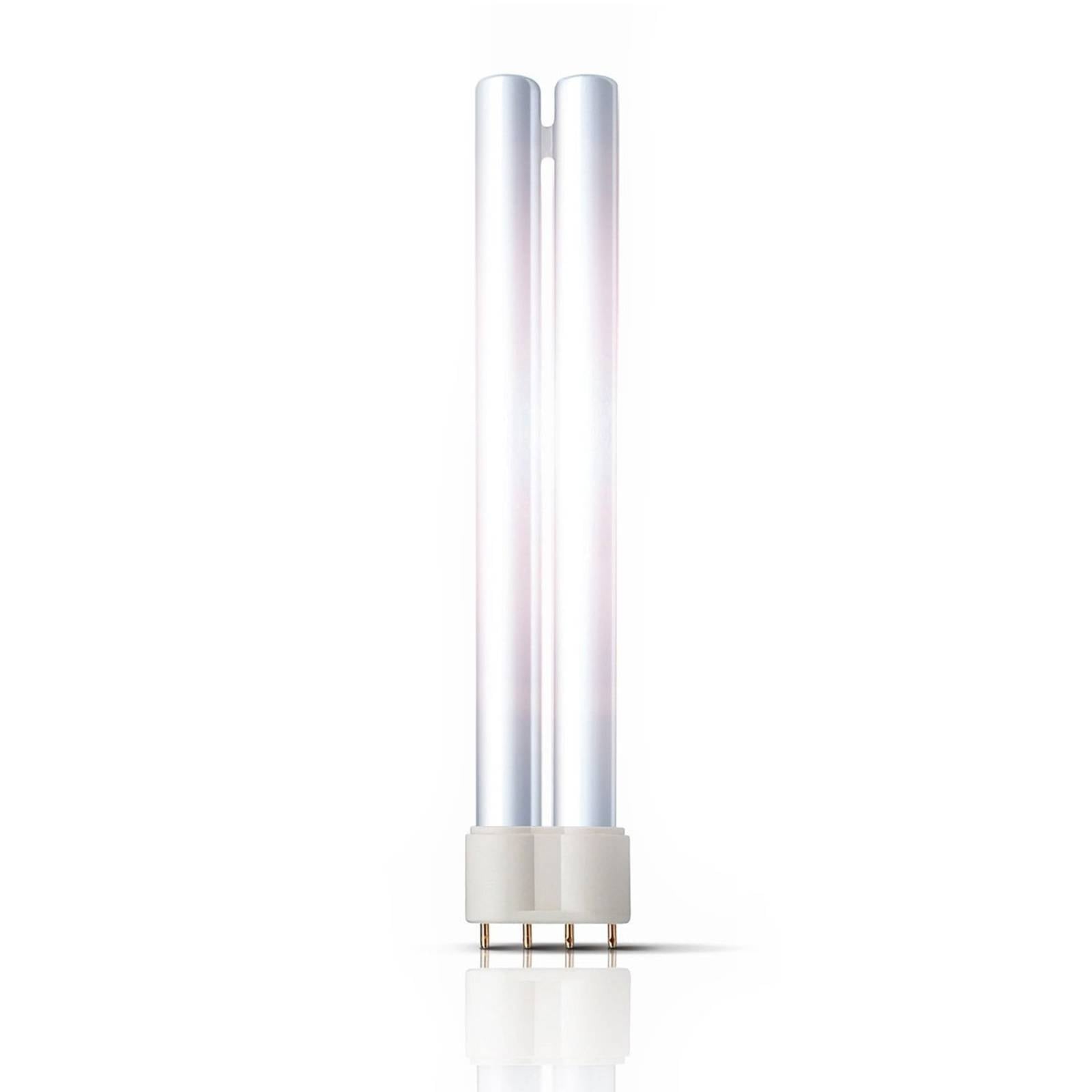 2G11 18W – 80W kompaktná žiarivka Master PL-L 4 Pin – značka PHILIPS Výhody – Mimoriadne dlhá životnosť – Viac svetla pri vysokých teplotách v svietidle vďaka mostíkovej technológii Philips Vlastnosti – Stmievateľné až do 10 % s vhodným elektronickým predradníkom – Dobré podanie farieb Použitie – Veľmi vhodné pre kompaktné svietidlá, napr. zapustené alebo povrchové stropné svietidlá v súkromných a profesionálnych aplikáciách. Poznámky – Fotometrické a elektrické vlastnosti žiarovky sú ovplyvnené prevádzkovými podmienkami, ako je teplota okolia a pracovná poloha, ako aj použitým vysokofrekvenčným predradníkom – Časté spínanie s nedostatočne predhriatymi elektródami skracuje životnosť žiarovky