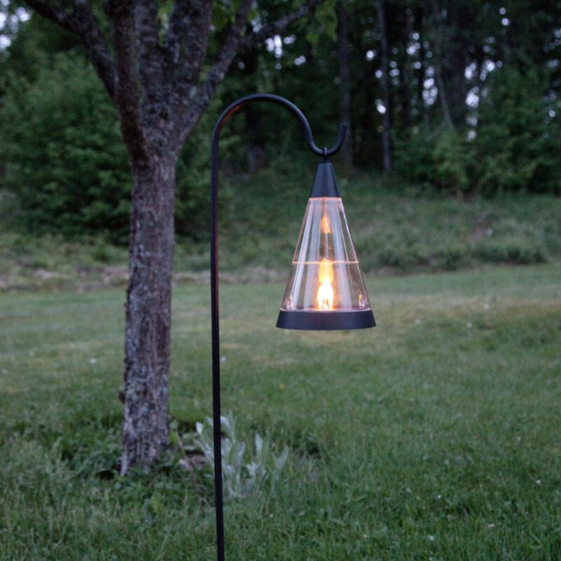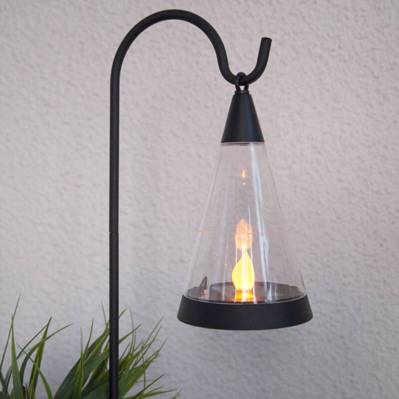 Kabrioletné solarna lampa 3 v 1 Pisa s voliteľným hrotom zeme Táto LED solarna lampa sa ukazuje ako skutočný všestranný talent, pretože lampu Pisa je možné používať nielen zavesenú na lane alebo na háku, ale aj stáť na stole alebo s priloženým hrotom zeme, aby mohla svietiť vonkajší priestor atmosférickým spôsobom. Vďaka modernému kužeľovitému dizajnu a vnútri jantárovo sfarbenej LED vyžaruje lampa úžasné teplo a útulnosť. Keď je batéria úplne nabitá, doba svietenia je približne 6 hodín. Vrátane snímača súmraku. – vrátane 1 batérie AA NiMH