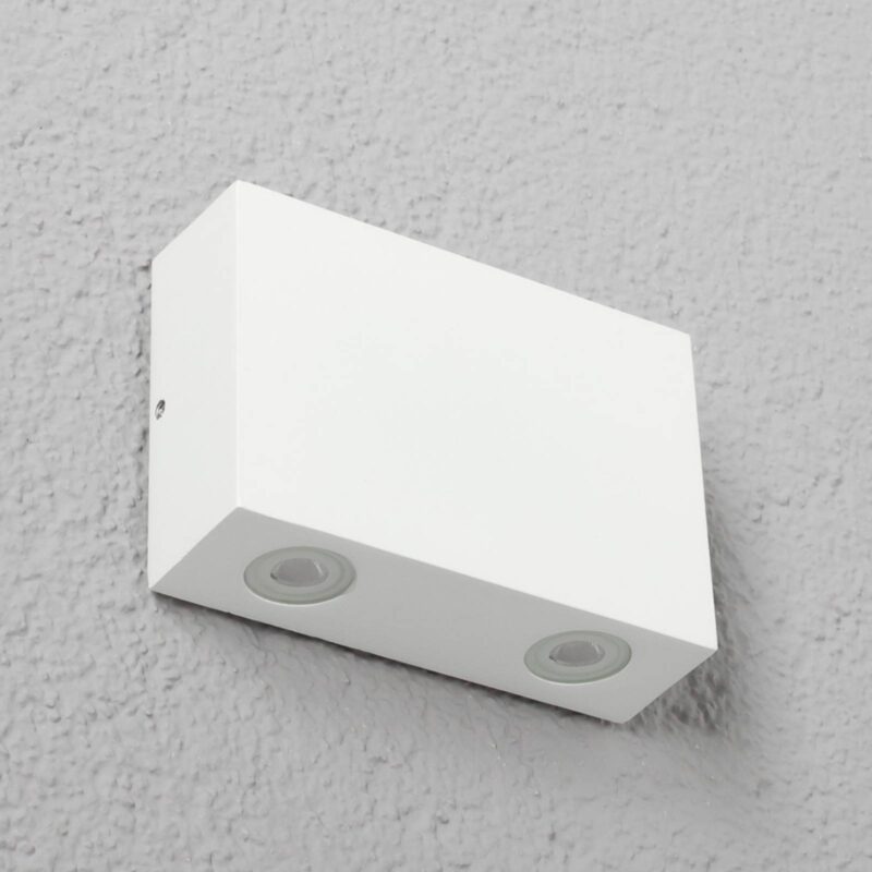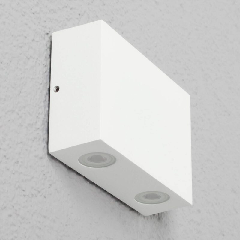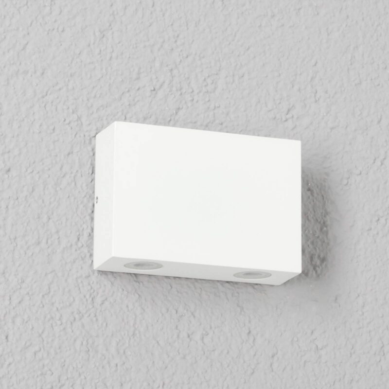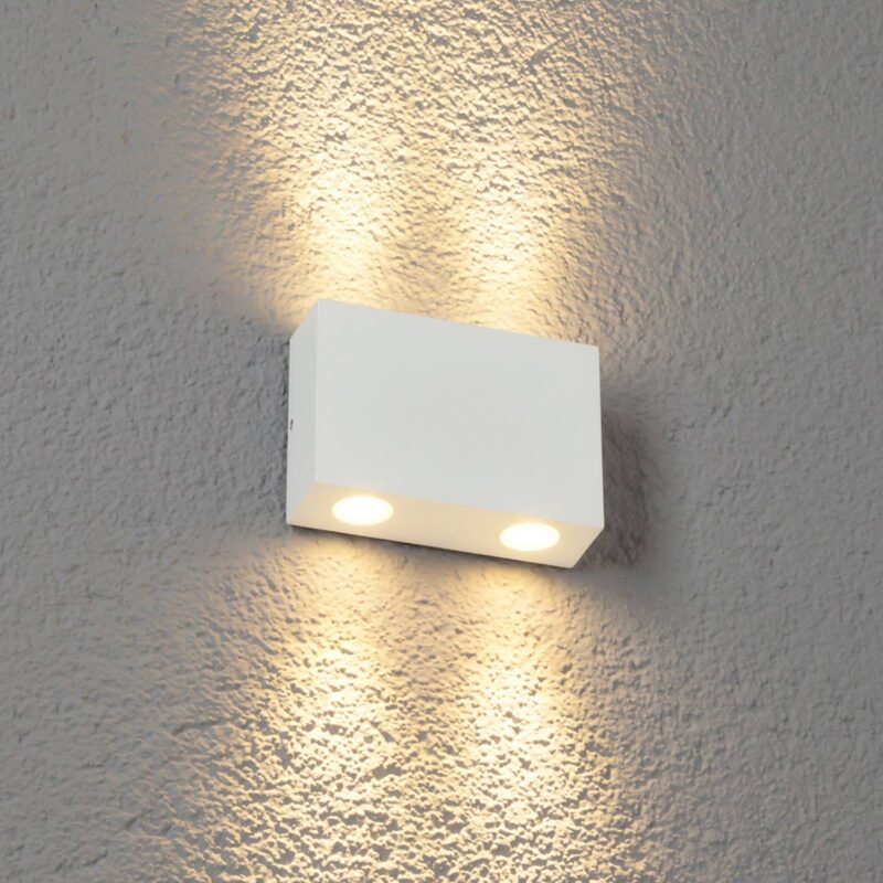 Obdĺžnikové exteriérové LED nástenné svietidlo Henor so skvelým svetelným efektom Vďaka svojmu bielemu povrchu a obdĺžnikovému tvaru je exteriérové LED nástenné svietidlo Henor vhodné do priestorov zariadených v takmer každom štýle a zaručene zapadne do dizajnu okolia. O svietenie exteriérového nástenného svietidla sa starajú dokopy štyri LED žiarovky značky Cree, z toho dve svietia smerom nahor a ďalšie dve smerom nadol. Určite si viete predstaviť, ako efektne pôsobí svetlo vytvorené týmto spôsobom. Ďalšou výhodou svietidla je jeho integrovaná LED technológia, ktorá spotrebuje len málo energie, čím odbremení aj vašu peňaženku – a to aj vtedy, keď necháte exteriérové osvetlenie svietiť dlhšie, keďže svieti tak krásne!