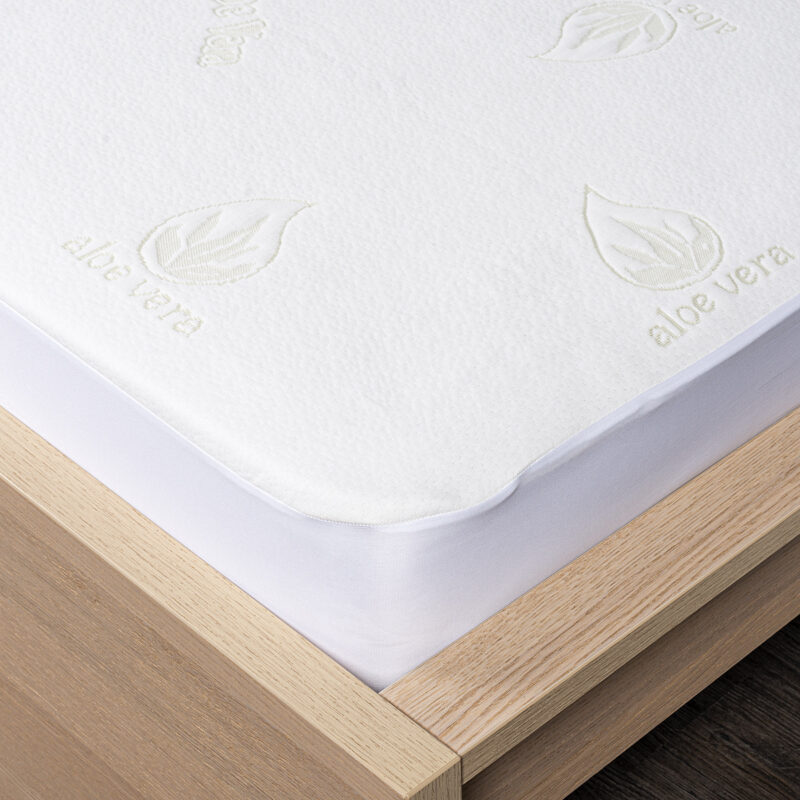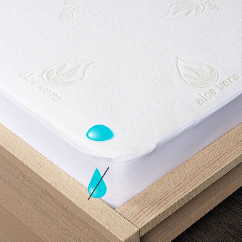 Skvelý pomocník pre zdravý spánok. Tento unikátny nepriepustný chránič matraca Aloe Vera prinesie vašej posteli dokonalú čistotu aj maximálne pohodlie. Je mäkký, priedušný a vďaka obsahu blahodarných výťažkov z Aloe Vera má pozitívne účinky na zdravie (najmä pokožku), pomáha upokojeniu a relaxácii, a navyše sa môže pochváliť antibakteriálnymi vlastnosťami. Pravidelné používanie chrániča predlžuje životnosť vášho matraca a bráni prenikaniu potu aj špiny do matraca, zaručí tak dokonalú hygienu vášho lôžka. Chránič matraca ľahko zvlečiete a vyperiete, takže údržba je takmer bez práce.Vďaka nepriepustnej úprave v podobe polyuretánového záteru sa navyše nemusíte báť žiadnych nepríjemných nehôd, ktoré by nenávratne poškodili váš matrac. Je teda skvelý aj do detských postieľok. Chránič je opatrený praktickým lemom pre jednoduché uchytenie k matracu – používa sa rovnako jednoducho ako napínacie prestieradlo a je vhodný na matrac s maximálnou výškou 15 cm. Chránič matraca je opatrený certifikátom Öko-Tex Standard 100.