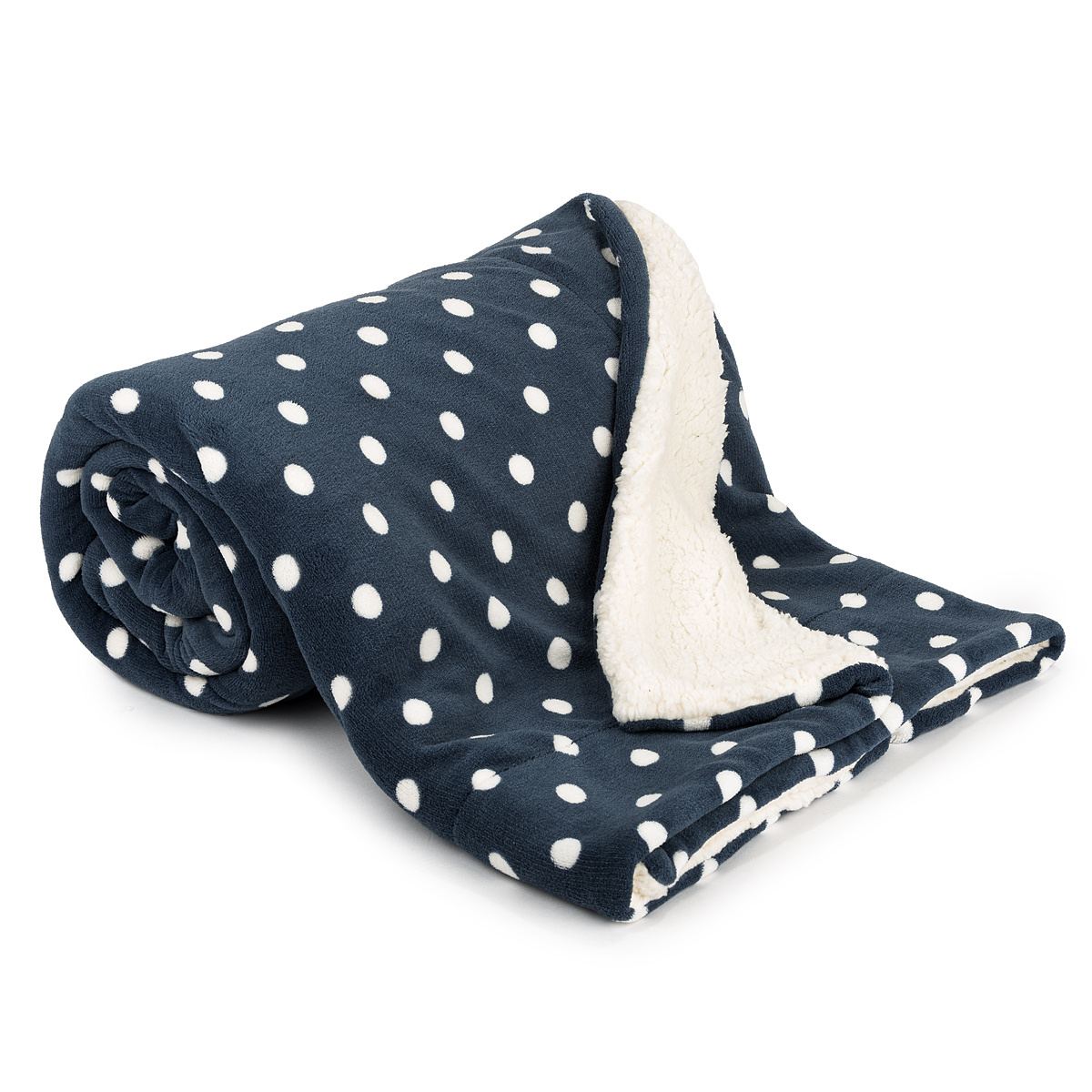 Štýlová baránková deka pre každého puntičkára. Rozverné bodky v decentnej modro-bielej kombinácii potešia všetkých, ktorí si potrpia na decentné doplnky s osobitým šarmom. Neodolateľne mäkká a úžasne hrejivá baránková deka vám spríjemní nejeden mrazivý deň a bude skvelým spoločníkom pre veľkých i malých.Deka má z jednej strany úžasne jemný mikroplyš a z druhej strany huňatého baránka, ktorý doslova pozýva k zababušeniu. Ideálny spoločník pre jesennú a zimnú relaxáciu pri obľúbenom filme, s knižkou alebo napríklad s lahodnou šálkou čaju.Baránok z mäkučkého mikrovlákna je veľmi jemný, hebký a nadýchaný. Je dokonale hrejivý, takže si ho zamilujú aj najväčší zmrzlíci. Zahreje rovnako spoľahlivo ako pravá vlna s tým rozdielom, že neláka roztoče. Je tak skvelou voľbou pre alergikov a bude hýčkať aj citlivú pokožku. Gramáž: vrchná strana 200 g/m2, spodná baránková strana 230 g/m2