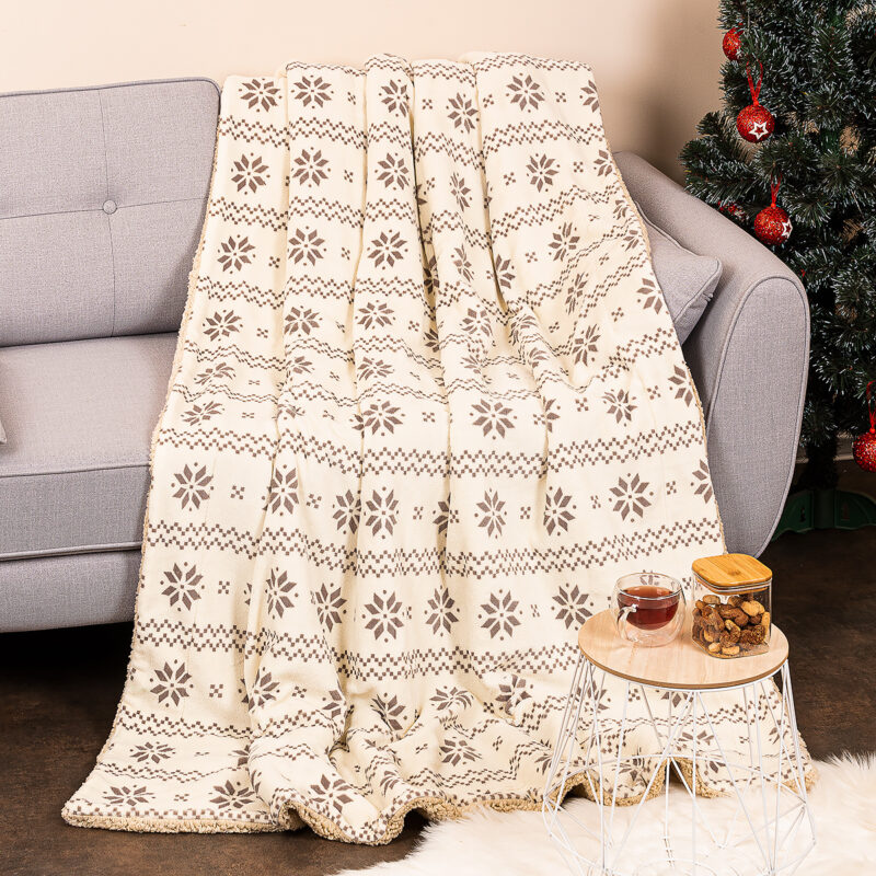 Zababušte sa do elegancie! Výnimočne teplá, mäkká a nadýchaná baránková deka je tým správnym spoločníkom pre každý deň. Obľúbený škandinávsky vzor v béžových odtieňoch dodá interiéru hrejivé čaro domova a doslova pozýva k zababušeniu a relaxácii. Z jednej strany hebučký béžový baránok, ktorý vás zahalí do príjemného tepla a pohodlia počas sychravých večerov aj mrazivých nocí, z druhej jemný mikroflanel s elegantným vzorom. Baránok z mäkučkého mikrovlákna je veľmi jemný a hebký. Je dokonale hrejivý, takže si ho zamilujú aj najväčší zmrzlíci. Zahreje rovnako spoľahlivo ako pravá vlna s tým rozdielom, že neláka roztoče. Je tak skvelou voľbou pre alergikov a bude hýčkať aj citlivú pokožku.Spoznajte kúzlo kolekcie bytového textilu Nordic, ktorá osobitým spôsobom čerpá inšpiráciu z obľúbeného škandinávskeho dizajnu a dodá vášmu domovu harmóniu severského bývania. Kolekcia Nordic ponúka pre každého niečo: jemné pastelové farby, neutrálne farebné ladenie, prírodné a zvieracie motívy či tradičné folklórne vzory.Gramáž: vrchná strana 200 g/m2, spodná baránková strana 230 g/m2