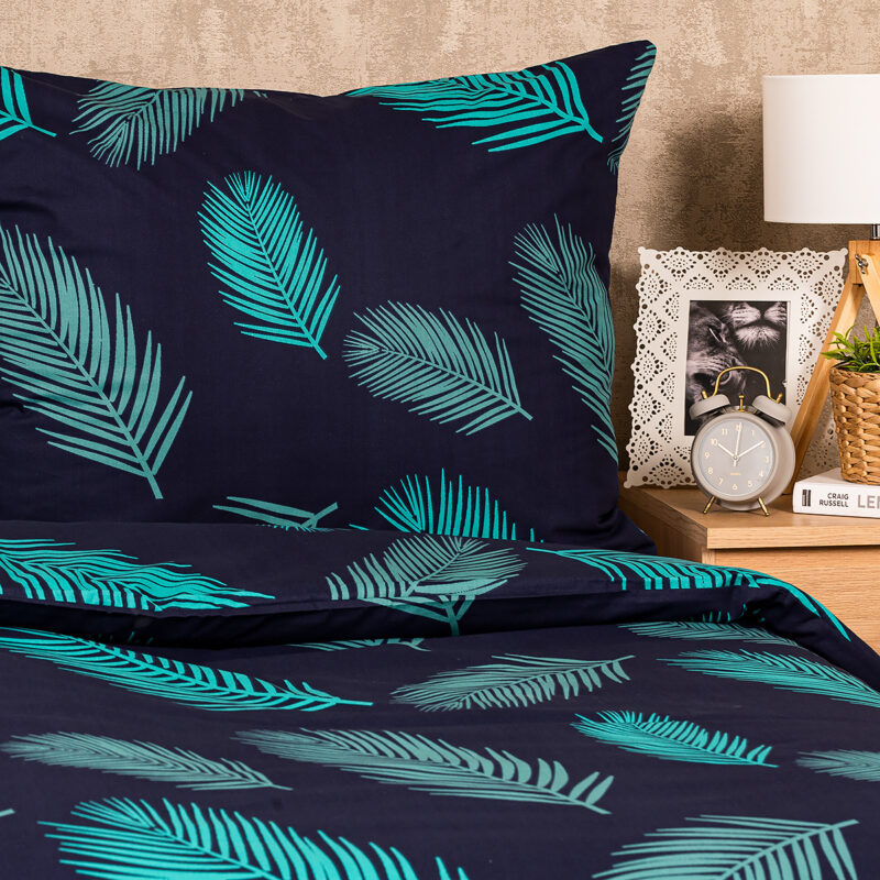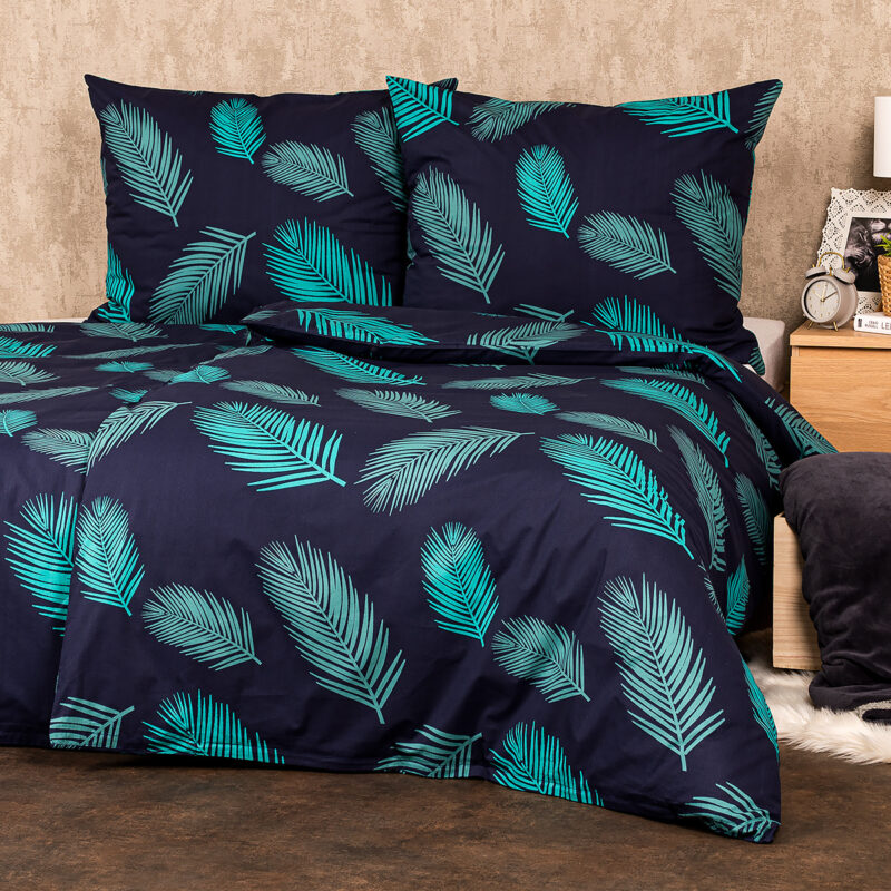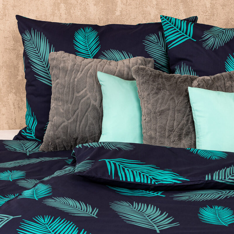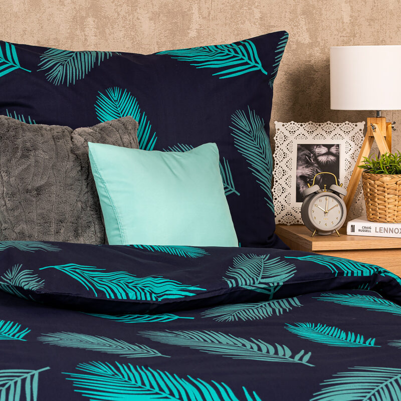 Zahaľte svoju spálňu do pokojnej atmosféry s bavlneným obliečkami Mystic. Upokojujúca kombinácia tmavomodrého podkladu a tyrkysového vzoru pierok pôsobí elegantným dojmom a z vašej spálne urobí dokonale pohodlné miesto na odpočinok. Kvalitná 100% bavlna zaručí maximálne pohodlie počas spánku. Obliečky majú z oboch strán rovnaký motív a sú opatrené zapínaním na zips.Súprava obsahuje: