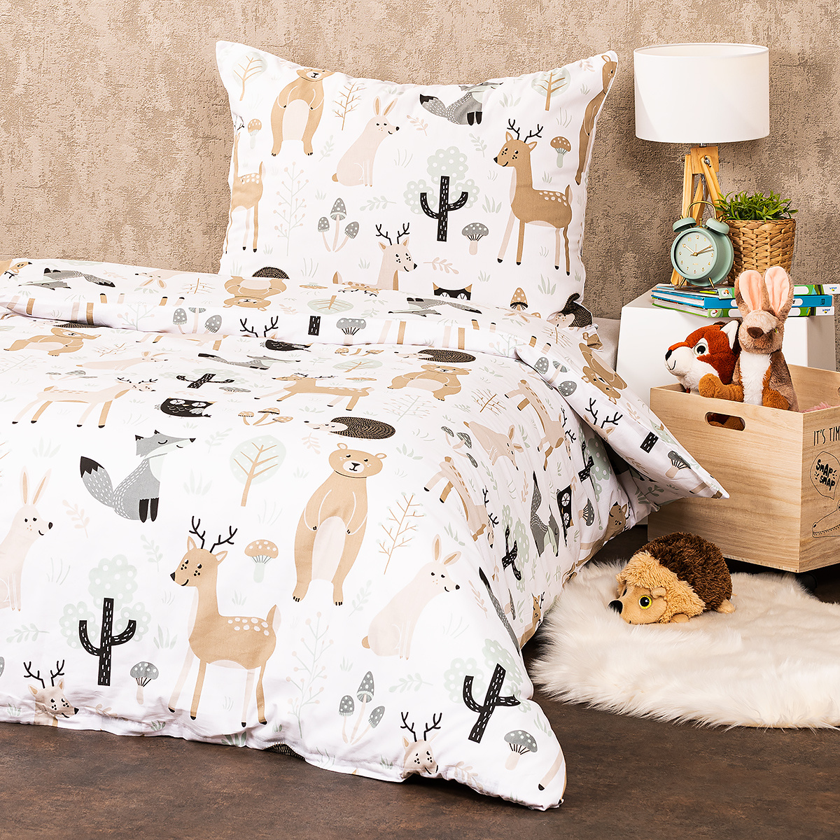 Žiadne nepohodlné zaspávanie na ihličí, ale pekne v teple v náruči veselých kamarátov z lesa. Mäkučké bavlnené obliečky s roztomilým motívom lesných zvieratiek sú vďaka neutrálnym pastelovým farbám univerzálnym doplnkom každej detskej izby a prinesú pohodový spánok.Kvalitná 100% bavlna zabezpečí maximálny komfort a je šetrná aj k citlivej detskej pokožke. Môžete tak zaspávať s vedomím, že o pohodlie vašich ratolestí je postarané do najmenšieho detailu. Obliečky sú z oboch strán rovnaké a majú praktické zapínanie na zips.Spoznajte kúzlo kolekcie bytového textilu Nordic, ktorá osobitým spôsobom čerpá inšpiráciu z obľúbeného škandinávskeho dizajnu a dodá vášmu domovu harmóniu severského bývania. Kolekcia Nordic ponúka pre každého niečo: jemné pastelové farby, neutrálne farebné ladenie, prírodné a zvieracie motívy či výrazné a tradičné folklórne vzory.Súprava obsahuje: