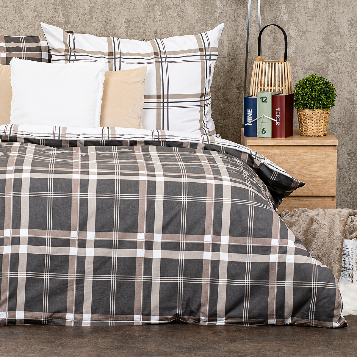 Štýlové bavlnené obliečky s jednoduchým vzorom sú skvelým doplnkom do každej spálne. Elegantný motív tradičnej škótskej kocky v neutrálnych tónoch hnedej a béžovej perfektne doladí interiér a zaručene neurazí ani v čisto pánskej izbe. Obliečky si zamilujete nielen vďaka elegantnému dizajnu, ale aj vďaka kvalitnej a príjemnej 100% bavlne, ktorá zaručí maximálny komfort.Obliečky sú obojstranné – z jednej strany kockovaný vzor na hnedosivom podklade, z druhej strany na bielom podklade. Môžete ich teda ľubovoľne kombinovať a meniť svoju posteľ každý deň. Pre maximálne pohodlie majú obliečky praktické zapínanie na zips.Súprava obsahuje:
