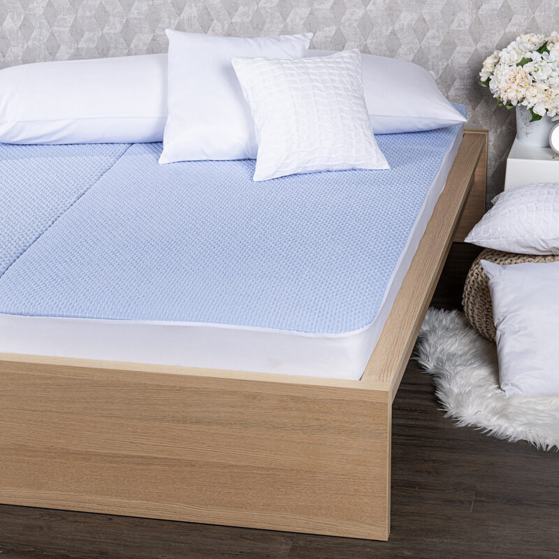 Pokojný a zdravý spánok aj v tých najväčších horúčavách? Kúpte si nepriepustný chladiaci chránič matraca! Tento unikátny chránič tvoria z 30 % špeciálne chladiace vlákna, ktoré zaistia príjemný spánok, ak napríklad trpíte nadmerným potením a príjemne vás ochladí aj počas teplých dní. Je mäkký, priedušný a zaistí maximálne pohodlie. Pravidelné používanie chrániča predlžuje životnosť vášho matraca a zabraňuje prenikaniu potu aj špiny do matraca, zaručí tak dokonalú hygienu vášho lôžka. Chránič matraca ľahko zvlečiete a vyperiete, takže údržba je takmer bez práce.Vďaka nepriepustnej úprave v podobe polyuretánového záteru sa navyše nemusíte báť žiadnych nepríjemných nehôd, ktoré by nenávratne poškodili váš matrac. Je teda skvelý aj pre deti. Chránič je opatrený praktickým lemom pre jednoduché uchytenie k matracu – používa sa rovnako jednoducho ako napínacie prestieradlo a je vhodný na matrac s maximálnou výškou 30 cm. Chránič matraca je opatrený certifikátom Öko-Tex Standard 100.