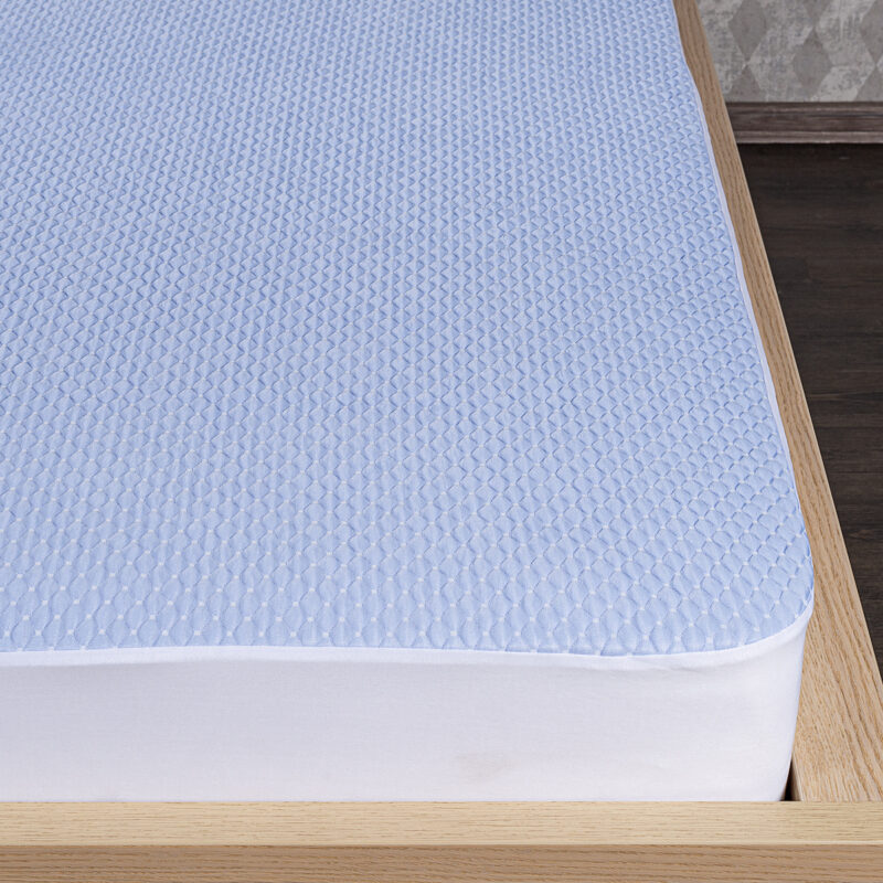Pokojný a zdravý spánok aj v tých najväčších horúčavách? Kúpte si chladiaci chránič matraca! Tento unikátny chránič tvoria z 30 % špeciálne chladiace vlákna, ktoré zaistia príjemný spánok, ak napríklad trpíte nadmerným potením a príjemne vás ochladí aj počas teplých dní. Je mäkký, priedušný a zaistí maximálne pohodlie. Pravidelné používanie chrániča predlžuje životnosť vášho matraca a zabraňuje prenikaniu potu aj špiny do matraca, zaručí tak dokonalú hygienu vášho lôžka. Chránič matraca ľahko zvlečiete a vyperiete, takže údržba je takmer bez práce. Chránič je opatrený praktickým lemom pre jednoduché uchytenie k matracu – používa sa rovnako jednoducho ako napínacie prestieradlo a je vhodný na matrac s maximálnou výškou 30 cm.Chránič matraca je opatrený certifikátom Öko-Tex Standard 100.