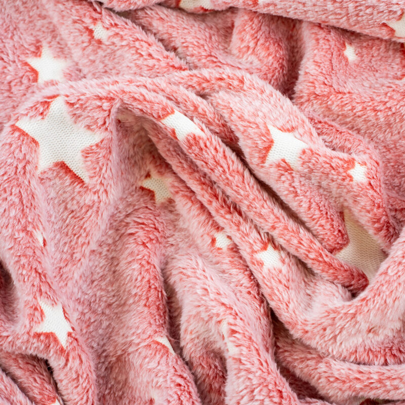 Hebučká deka z mikrovlákna, vďaka ktorej bude váš domov žiariť aj v šedivých a sychravých dňoch. Romantický červený podklad totiž zdobí veľa malých i veľkých hviezdičiek, ktoré v tme naozaj svietia, takže vašim večerom aj nociam dodajú jedinečné čaro.