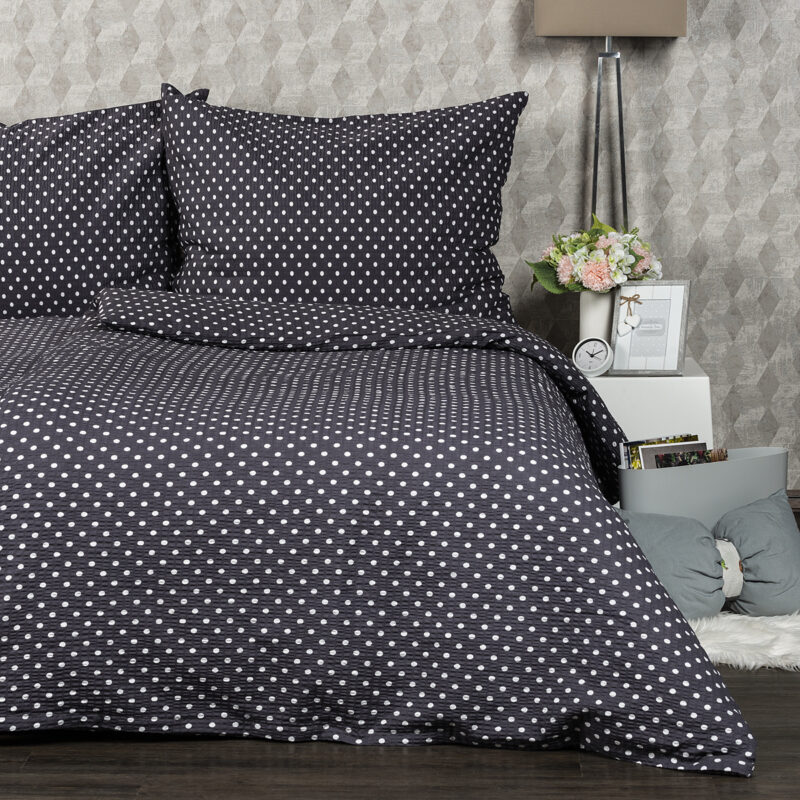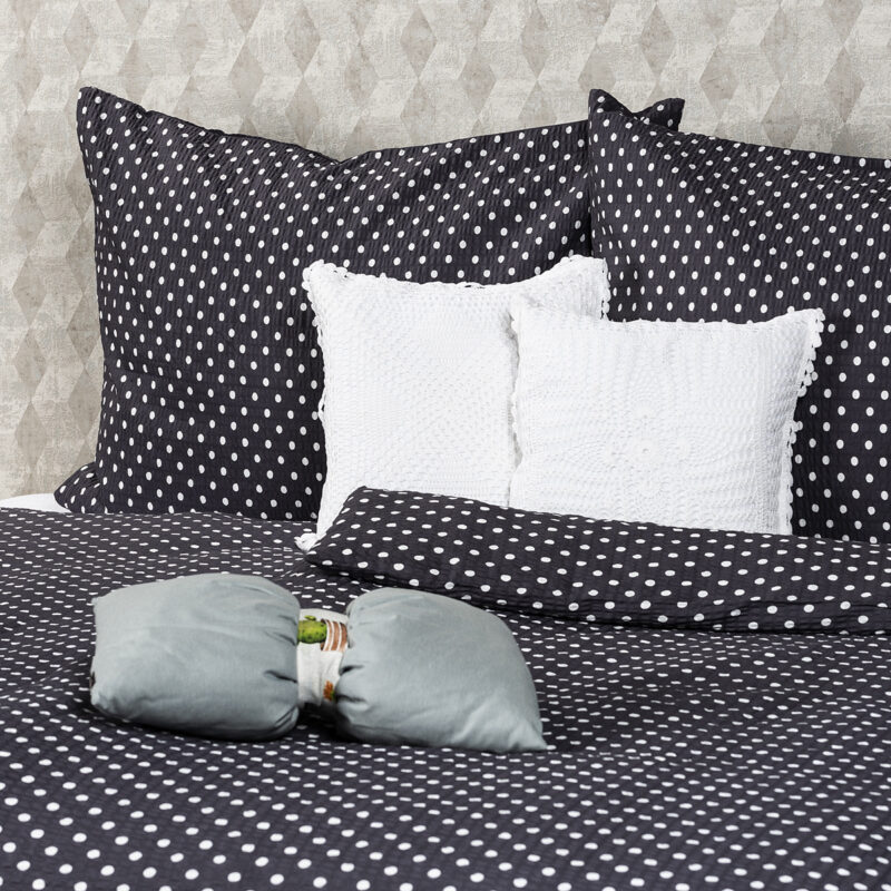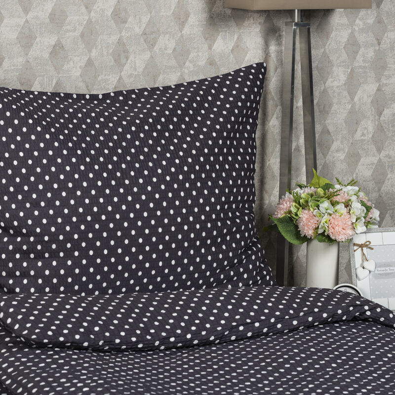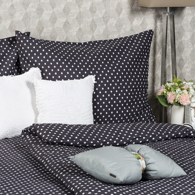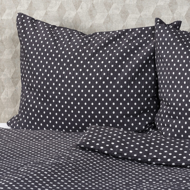 Elegantné potešenie pre každého puntičkára. Rozverné bodky vnesú retro atmosféru do každej spálne a vďaka decentnému sivo-bielemu prevedeniu navyše pôsobia veľmi elegantne. Ideálne krepové obliečky pre všetkých s hravou a jemnou dušou. Príjemná 100% bavlna vám zaručí kvalitný a pohodlný spánok každú noc, takže sa vždy budete do svojej postele s nadšením vracať. A vďaka úprave krep ušetríte veľa času, pretože nebudete musieť obliečky žehliť. Pre maximálne pohodlie majú obliečky praktické zapínanie na zips.Súprava obsahuje: