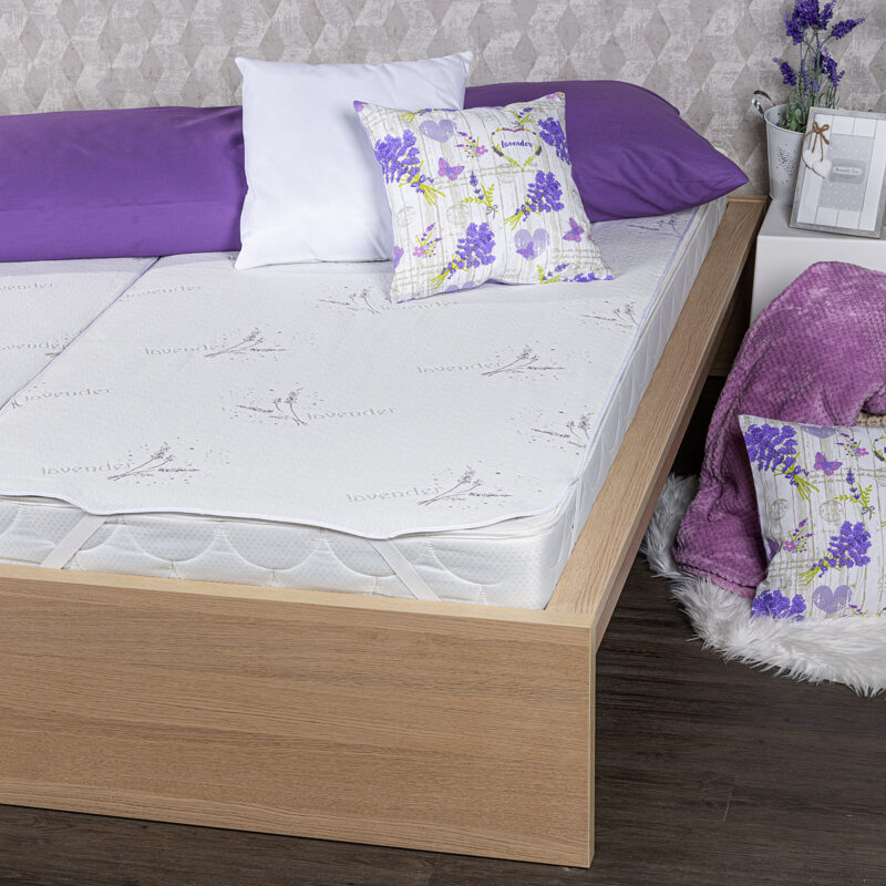 Doprajte si maximálnu relaxáciu a zdravý spánok s vôňou levandule. Tento unikátny nepriepustný chránič matraca Lavender prinesie vašej posteli dokonalú čistotu i pohodlie. Je mäkký, priedušný a vďaka výťažkom z levandule má upokojujúce účinky, pôsobí proti nespavosti a nervozite. Uvoľňuje jemnú levanduľovú vôňu. Pravidelné používanie chrániča predlžuje životnosť vášho matraca a bráni prenikaniu potu aj špiny do matraca, zaručí tak dokonalú hygienu vášho lôžka. Chránič matraca ľahko zvlečiete a vyperiete, takže údržba je takmer bez práce. Vďaka nepriepustnej úprave v podobe polyuretánového záteru sa navyše nemusíte báť žiadnych nepríjemných nehôd, ktoré by nenávratne poškodili váš matrac. Je teda skvelý aj do detských postieľok. V rohoch chrániča sú praktické gumy pre jednoduché uchytenie k matracu – zostane tak vždy na svojom mieste. Je vhodný na matrace s maximálnou výškou 30 cm. Chránič matraca je opatrený certifikátom Öko-Tex Standard 100.