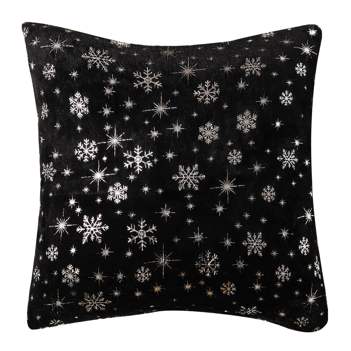 Štýlová obliečka na vankúšik v elegantnej čiernej farbe pre rozprávkovú zimu. Zamilujete si ju nielen vďaka mäkučkému chlpatému materiálu, ale aj hravému dizajnu s lesklým motívom snehových vločiek po celej ploche obliečky. Hebký materiál je veľmi príjemný na dotyk, motív je z oboch strán rovnaký, zapínanie na skrytý zips.Upozorňujeme na chybu etikety, kde je uvedené pranie na 40 °C. Obliečku na vankúšik odporúčame prať ručne a naruby.