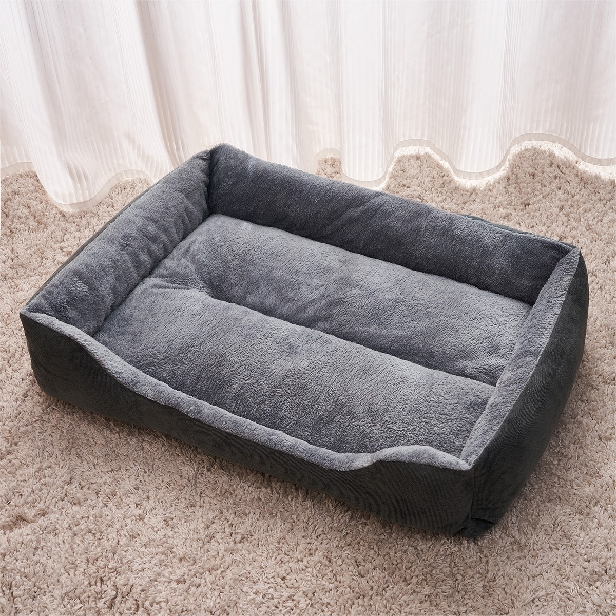 Vďaka rozmerom 81 x 65 cm a výške 18 cm je pelech vhodný najmä pre väčšie plemená psov s hmotnosťou do 27 kg. Ľahko ho umiestnite do akejkoľvek časti bytu, na koberec, pod okno aj do rohu miestnosti. Elegantné čiernosivé prevedenie navyše pôsobí vkusne a ľahko ho zladíte s interiérom.