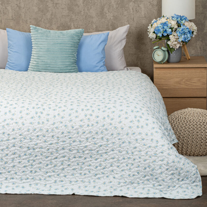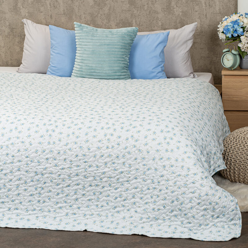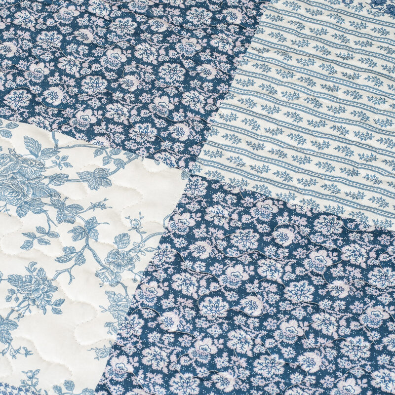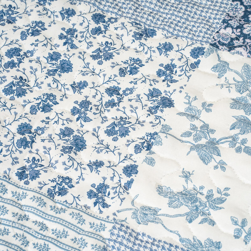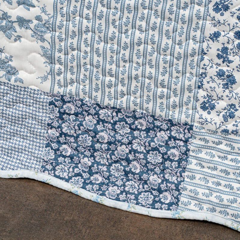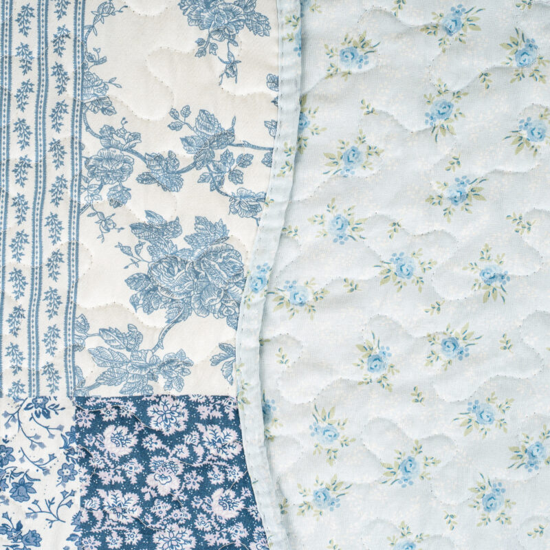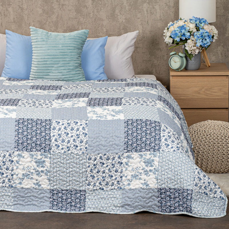 Originálny prehoz na posteľ Blue Patchwork je dokonalou kombináciou štýlu, pohodlia a praktickosti. Elegantný patchworkový dizajn v jemných odtieňoch modrej a bielej dodá vašej spálni svieži a pokojný vzhľad, zatiaľ čo drobné kvetinové vzory vnesú do priestoru romantickú atmosféru.