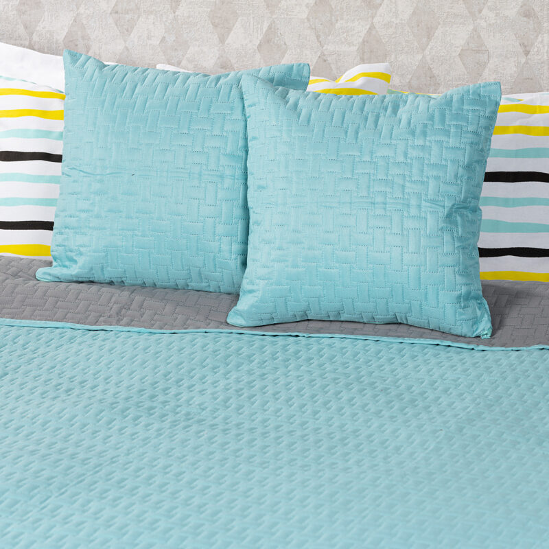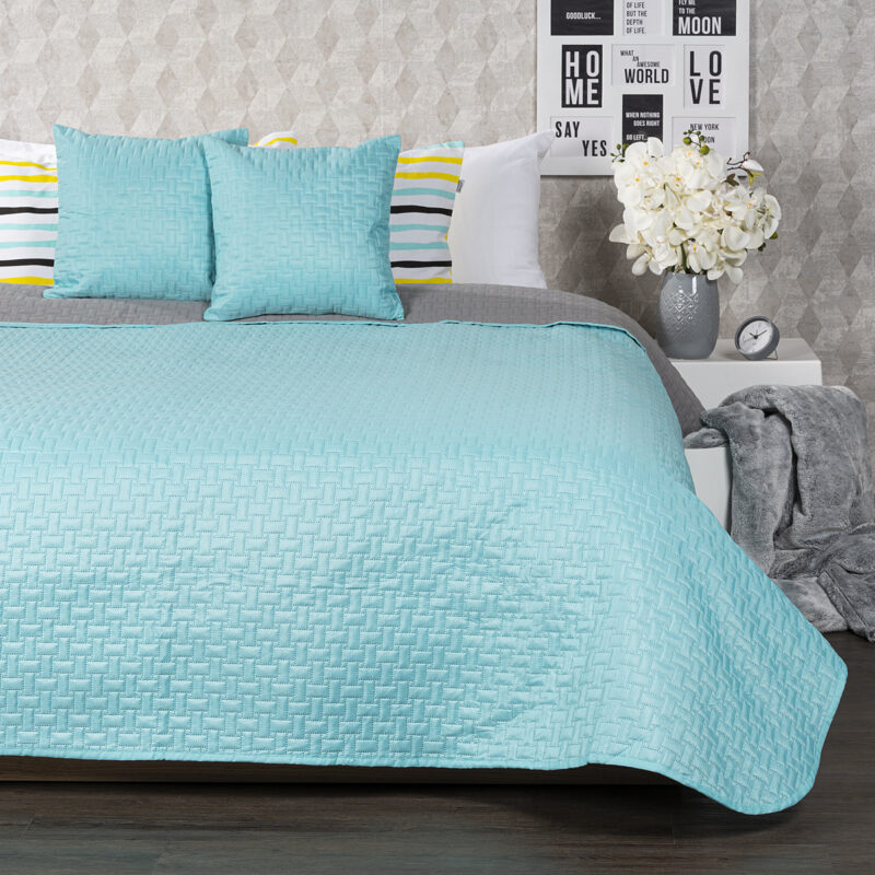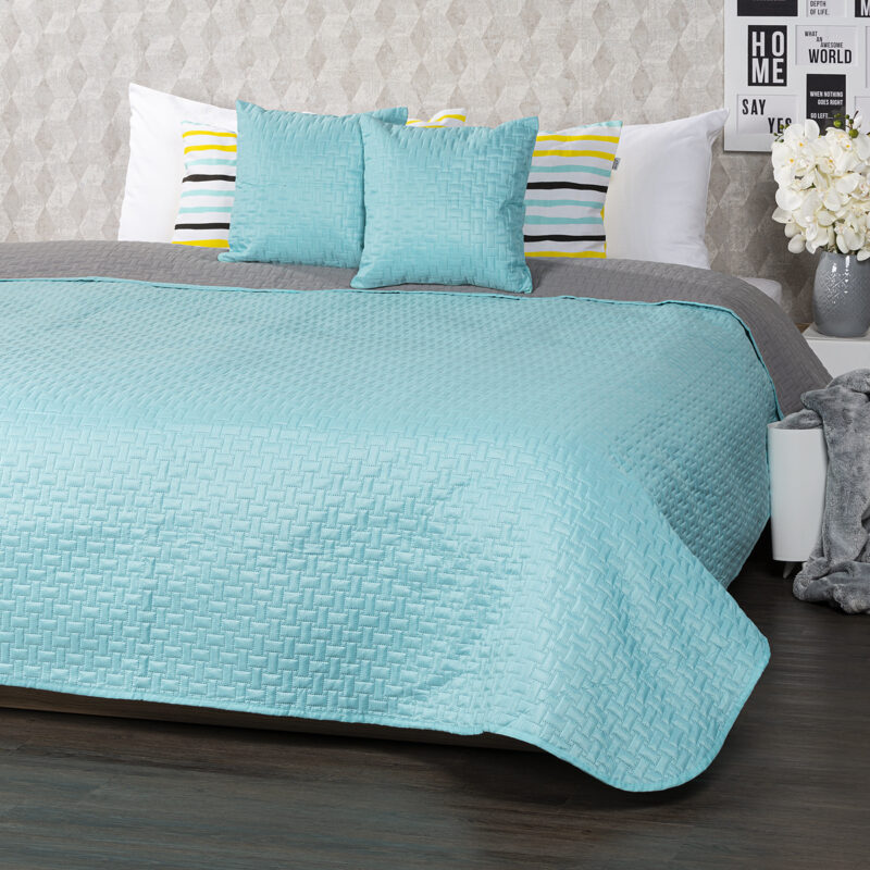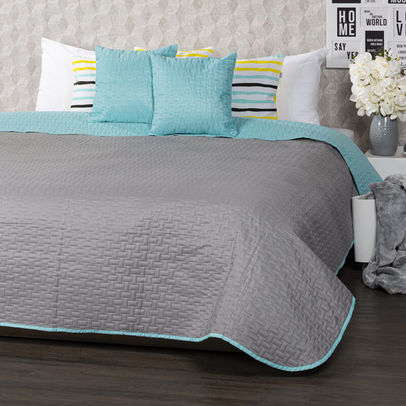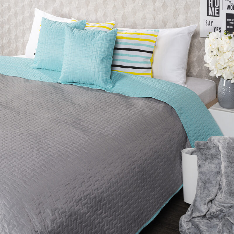 Atraktívny obojstranný prehoz na posteľ v dvojfarebnom prevedení je štýlovým i praktickým doplnkom do každej spálne. Vďaka unikátnemu farebnému ladeniu v modernej kombinácii tyrkysovej a sivej získate vlastne dva prehozy v jednom – stačí si len zvoliť, na akú farbu máte práve náladu. Prehoz ochráni vaše obliečky pred vyblednutím aj všadeprítomným prachom a navyše bude vaša posteľ vždy rýchlo ustlaná. Mäkučký materiál s originálnym plastickým vzorom dokonale kopíruje tvar nábytku. Prehoz môžete použiť aj ako veľkú deku, do ktorej sa zababuší celá rodina.Súčasťou balenia sú dve obliečky na vankúšiky s rovnakým vzorom ZADARMO. Sada obsahuje:
