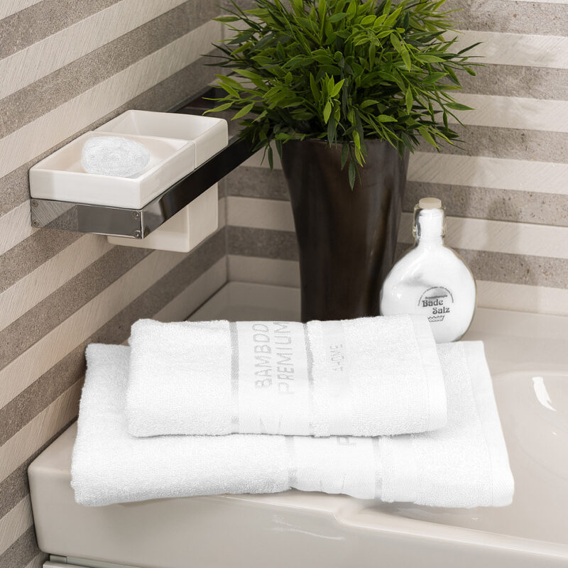 Doprajte si exkluzívne pohodlie a dajte zbohom baktériám s extra jemným uterákom a osuškou z radu Bamboo Premium. Vďaka vysokému obsahu bambusových vlákien (70 %) je materiál nielen veľmi šetrný k pokožke, ale tiež má prirodzené antibakteriálne vlastnosti, ktoré bránia tvorbe plesní a množeniu baktérií. Kombinácia bambusových vlákien a jemnej bavlny zaisťuje vysokú savosť a dokonalú jemnosť, ktorá vás bude rozmaznávať každý deň. S kvalitnou sadou Bamboo Premium doprajete svojej pokožke po kúpeli tú najlepšiu starostlivosť. Navyše vďaka veselej farbe a štýlovej bordúre skvele doladíte svoju kúpeľňu. Materiál je vďaka svojim jedinečným vlastnostiam vhodný aj pre jemnú detskú pokožku a pre alergikov. Súprava obsahuje: