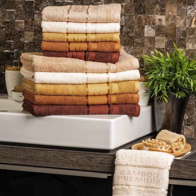 Doprajte si exkluzívne pohodlie a dajte zbohom baktériám s extra jemným uterákom a osuškou z radu Bamboo Premium. Vďaka vysokému obsahu bambusových vlákien (70%) je materiál veľmi šetrný k pokožke a tiež má prirodzené antibakteriálne vlastnosti, ktoré bránia tvorbe plesní a množeniu baktérií. Kombinácia bambusových vlákien a jemnej bavlny zaisťuje vysokú savosť a dokonalú jemnosť, ktorá vás bude rozmaznávať každý deň.S kvalitnou sadou Bamboo Premium doprajete svojej pokožke po kúpeli tú najlepšiu starostlivosť. Navyše vďaka elegantnej neutrálnej farbe a štýlovej bordúre skvele doladíte svoju kúpeľňu. Osuška a uterák sú vďaka svojim jedinečným vlastnostiam vhodné aj pre jemnú detskú pokožku a pre alergikov. Balenie obsahuje: