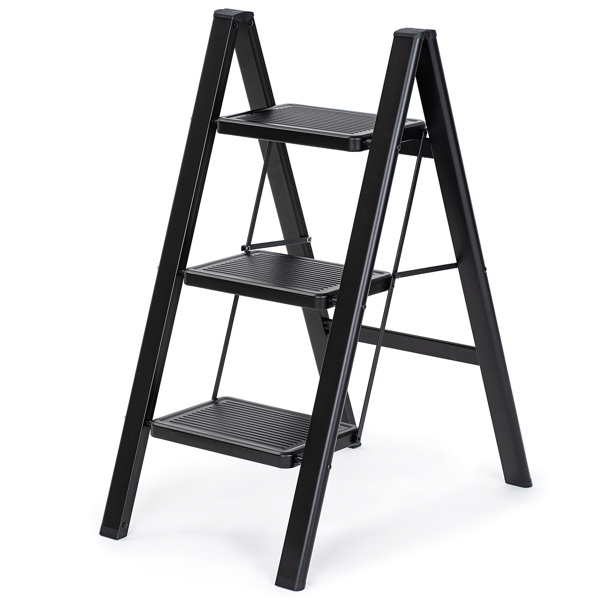 4Home Skladacie oceľové schodíky Steel, 3 stupne, čierna