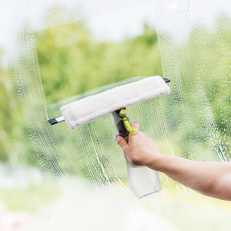 Okná umyté raz dva? Stačí vám na to len jeden pomocník! Dokonalá stierka na okná s rozprašovačom aj návlekom z mikrovlákna urobí všetku prácu za vás v 3 krokoch. Z rozprašovača nanesiete na okná saponát, špongiou ich umyjete a potom len stierku otočíte a pohodlne okná zotriete.Návlek z mikrovlákna možno jednoducho zvliecť a prať v práčke na 60 °C. Nádržka na saponát a rukoväť sú vyrobené z plastu, návlek z mikrovlákna, stierka – hliník + guma.