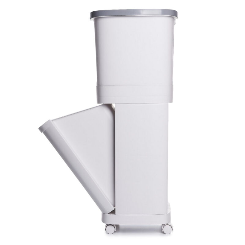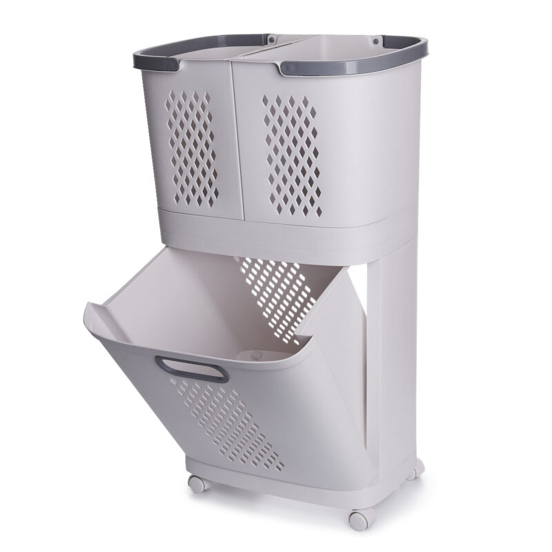 Nepostrádateľný pomocník na kolieskach nájde svoje využitie v každej domácnosti. Vďaka trom praktickým košíkom uloženým na 2 poschodiach získate praktický úložný priestor do kúpeľne, kuchyne, detskej izby alebo napríklad dielne. Priestranné koše bez problému pojmú všetko, čo práve v domácnosti bude potrebovať svoje vlastné miesto, či už je to špinavá bielizeň, potraviny alebo hračky vašich ratolestí.Vďaka výklopnému väčšiemu košu v spodnej časti a odnímateľným menším košíkom s rukoväťou budete mať ľahký prístup ku všetkým svojim uloženým veciam. Kolieska zaistia ľahkú manipuláciu a premiestnenie celého regálu úplne bez námahy.Výhody: