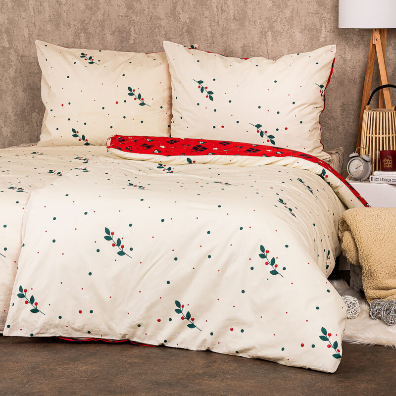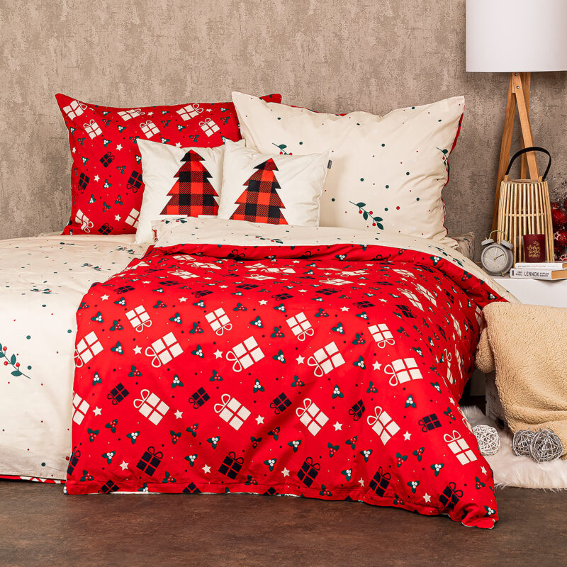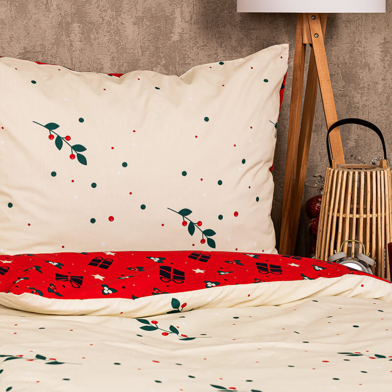Bavlnené obliečky pre dokonalú sviatočnú atmosféru aj v spálni. Vianočné obliečky v červeno-krémovej kombinácii s množstvom tematických motívov zaručene prinesú isté čarovné sny plné vianočnej radosti a cinkanie rolničiek. Mäkká a príjemná 100% bavlna vám zaistí pohodlný spánok.Obliečky sú obojstranné – z jednej strany červené s veselým motívom vianočných darčekov, druhá strana je v decentnej krémovej farbe ozdobená jemným motívom cezmíny. Ideálne spojenie pre kreatívne kombinovanie. Pre maximálne pohodlie majú obliečky praktické zapínanie na zips. Súprava obsahuje: