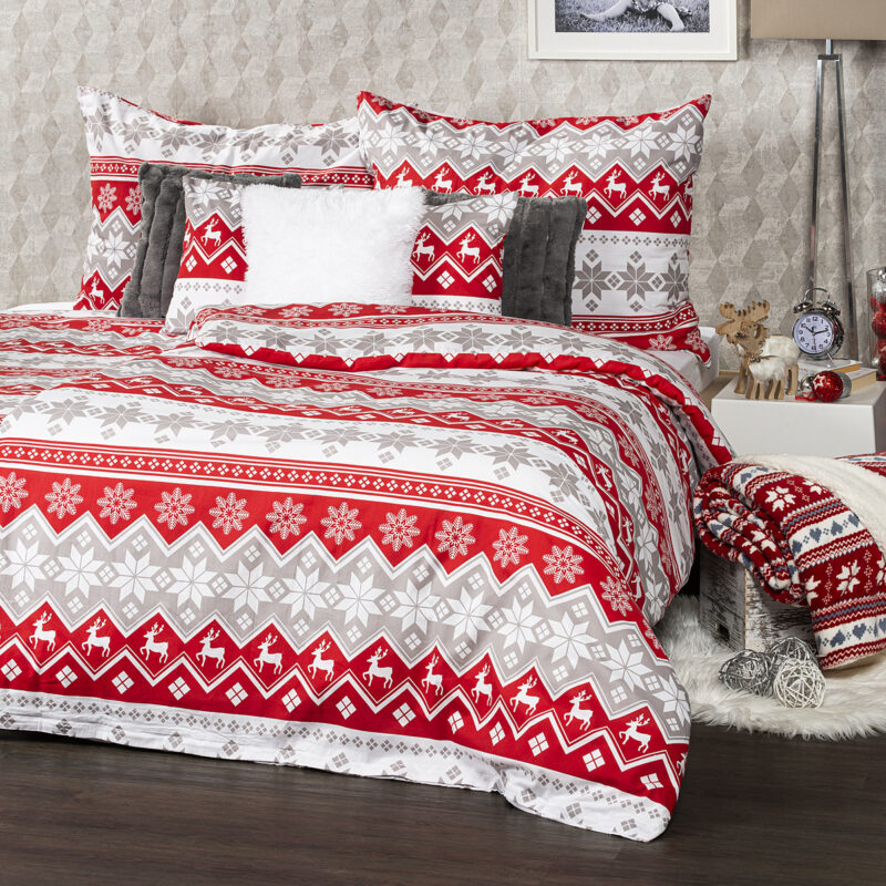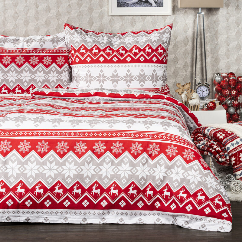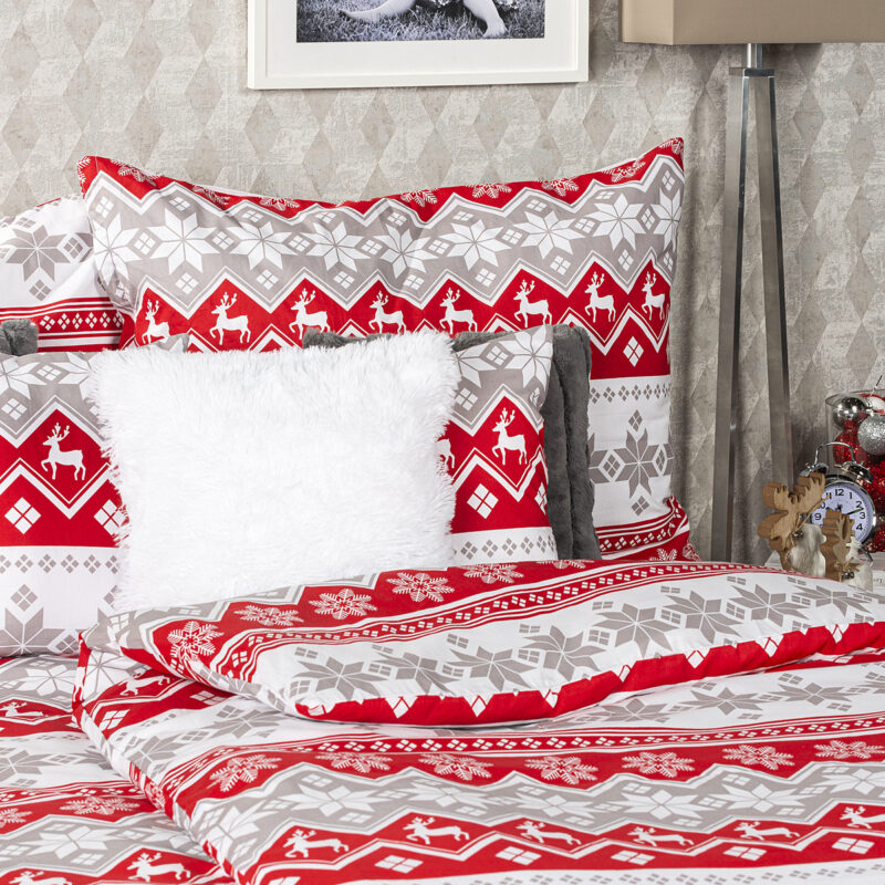 4home Vianočné bavlnené obliečky Red Nordic, 220 x 200 cm, 2 ks 70 x 90 cm