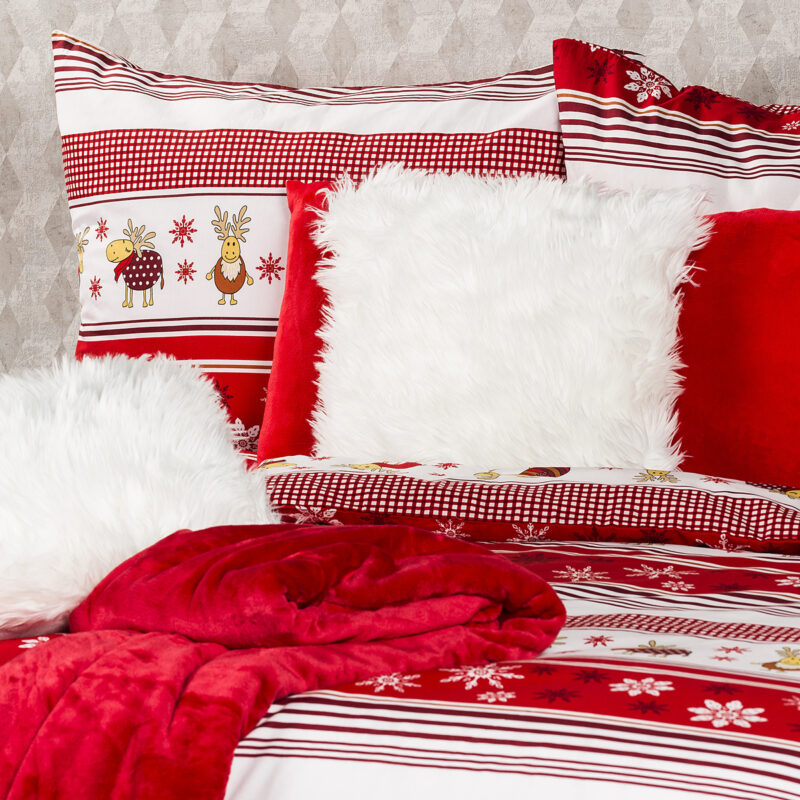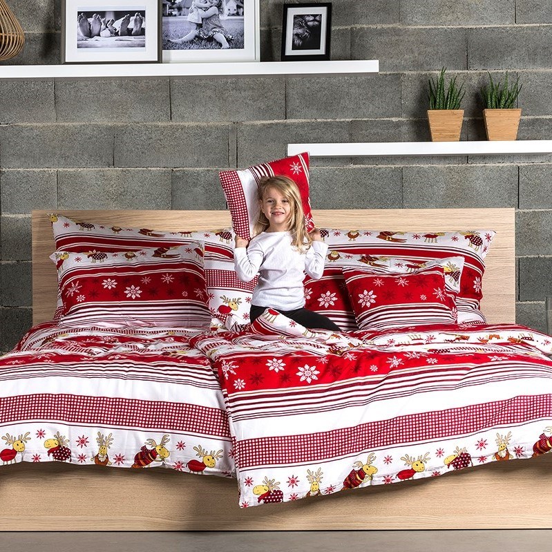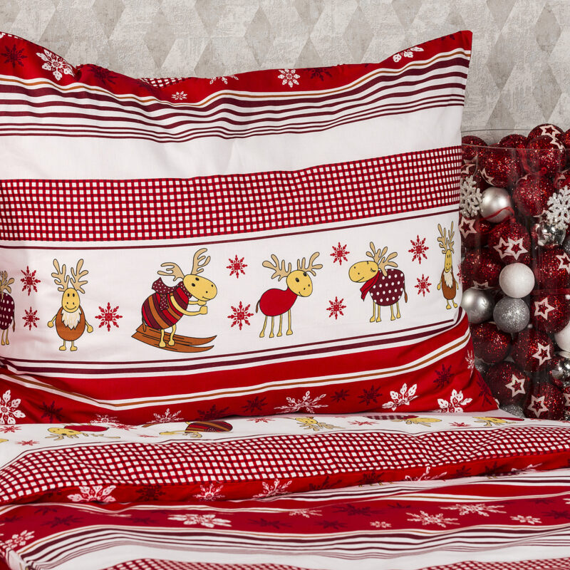 Veselé bavlnené obliečky so sobmi potešia každú dušu a navodia pravú vianočnú pohodu. Hravé sobíky si môžete užívať nielen počas sviatkov. Kúzelní sobíci v červeno-bielej kombinácii prinesú pohodlný spánok a príjemné sny nielen deťom. Mäkká a kvalitná bavlna vás zahreje aj v tých najchladnejších nociach a vy sa do svojej pohodlnej postele budete vždy radi vracať. Obliečka na vankúš je ušitá z metráže, preto sa vzory môžu mierne líšiť.