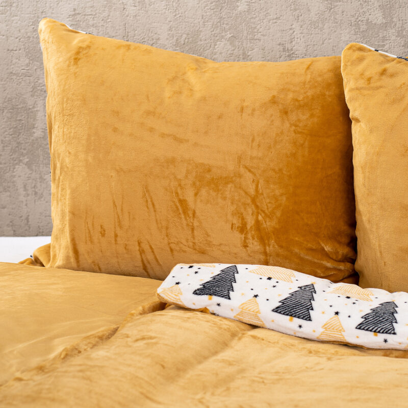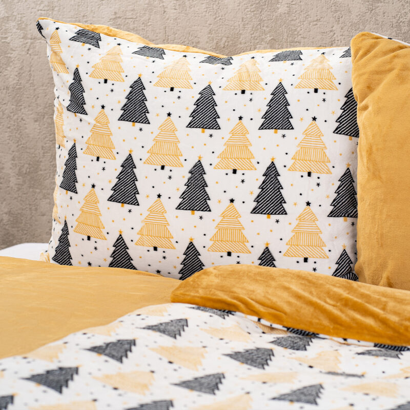 Vyčarujte vo svojej spálni čarovné ticho zimného lesa. Mikroflanelové obliečky s jednoduchým zimným motívom v škandinávskom dizajne budú skvelým spoločníkom do chladných nocí. Obliečky sú obojstranné – z jednej strany jednoduché vianočné stromčeky na bielom podklade, ktoré navodia kúzlo zasnežených plání, druhá strana je jednofarebná v odtieni slávnostnej béžovozlatej. Sú krásne mäkké a hrejivé – ideálny spoločník pre malých i veľkých zmrzlíkov. Mikroflanel rýchlo schne, nemusí sa žehliť ani sa nekrčí a je šetrný aj k citlivej pokožke.Spoznajte kúzlo kolekcie bytového textilu Nordic, ktorá osobitým spôsobom čerpá inšpiráciu z obľúbeného škandinávskeho dizajnu a dodá vášmu domovu harmóniu severského bývania. Kolekcia Nordic ponúka pre každého niečo: jemné pastelové farby, neutrálne farebné ladenie, prírodné a zvieracie motívy či tradičné folklórne vzory.Súprava obsahuje: