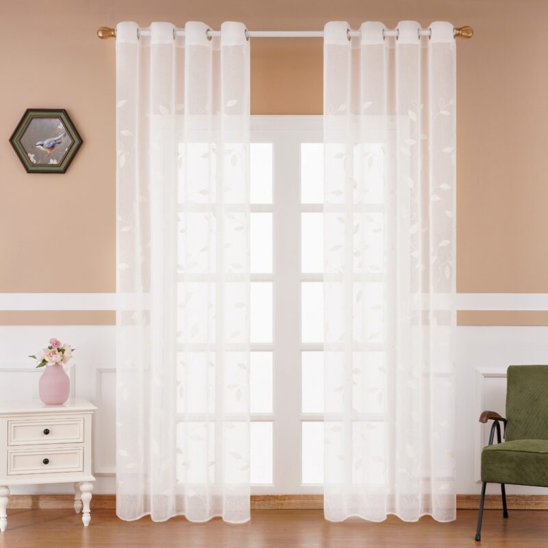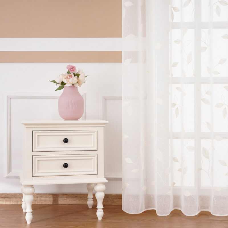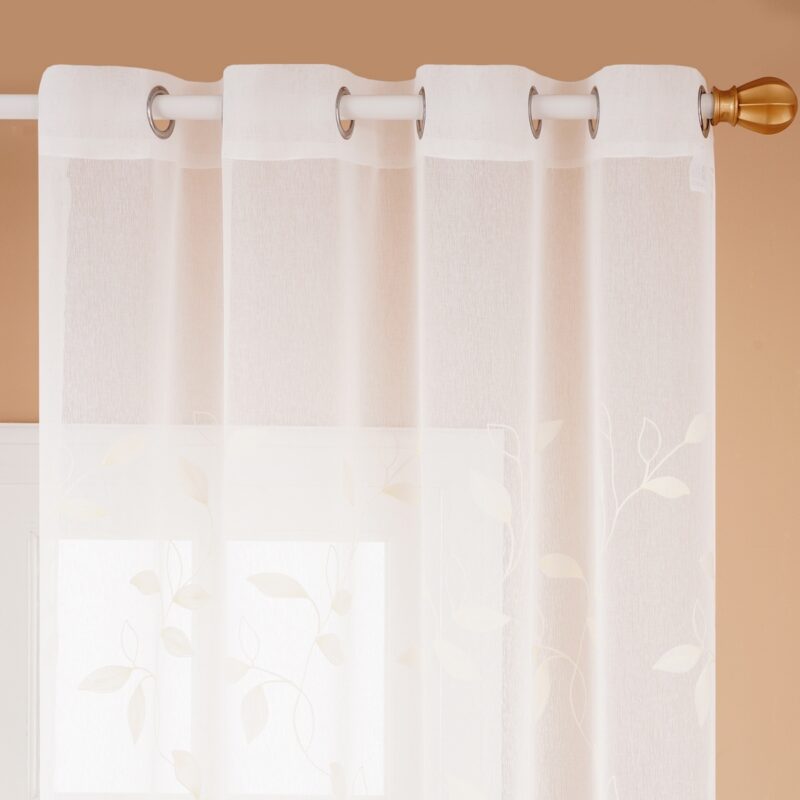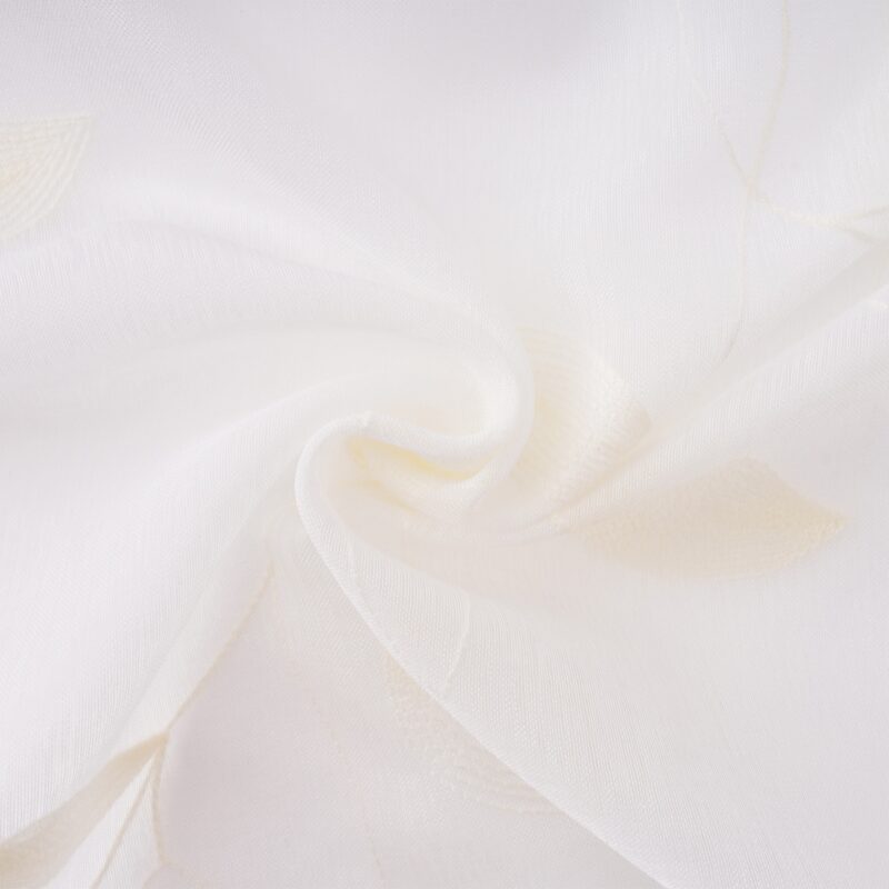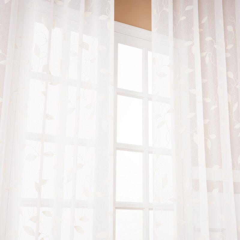 Ľahučká voálová záclona v bielej farbe s vyšívaným motívom dodá oknám dotyk jemnosti a zútulní váš domov. Elegantné prevedenie s výšivkou tón v tóne je dokonalým doplnkom pre každé vaše okno. Motív lístkov posunie vaše bývanie o kúsok bližšie prírode a navodí tú správnu domácu atmosféru a pohodu. Látka má ľahučkú štruktúru, doslova ako závoj víly, takže príjemne prevzdušní každý interiér.Voály umožňujú prirodzenému svetlu zvonku príjemne osvetliť váš domov. Jemná štruktúra látky funguje ako rozptyľovač, vďaka čomu svetlo získa príjemný mäkký tón. Jednoduché zavesenie na krúžky aj jednoduchá údržba zaistia maximálne pohodlie.