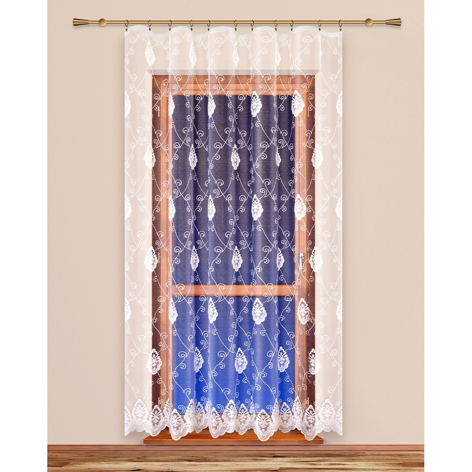 Záclona s ornamentami pripomínajúca zámocký vzor sa zaručene postará o nevšednosť vášho interiéru a navyše zútulní každú miestnosť. Vyrobené z kvalitného materiálu. Vďaka pevnému okraju možno záclonu zavesiť na žabky a rovno ju zavesiť na okno. Riasiaca stuha nie je súčasťou.