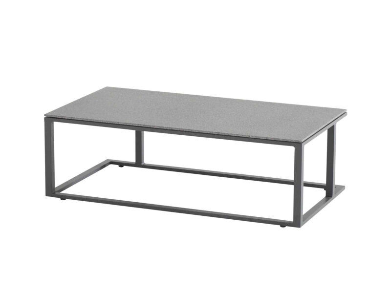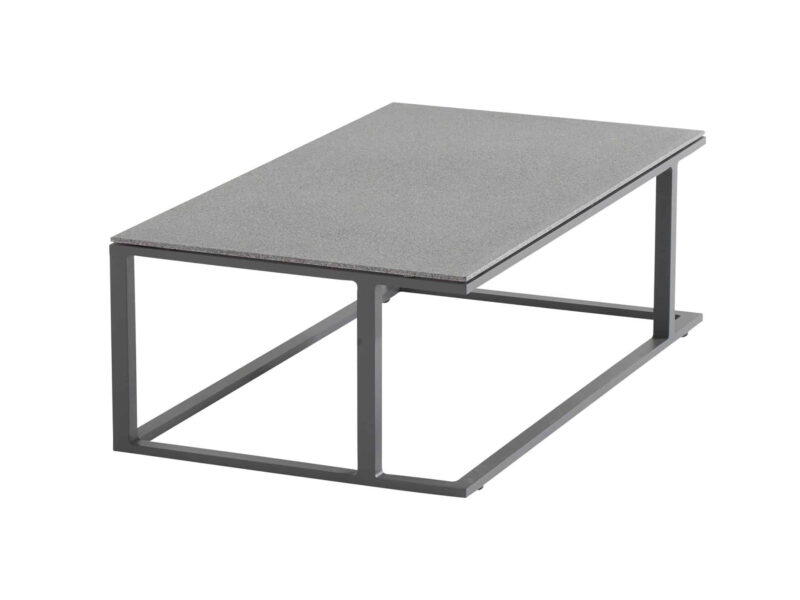 Moderný kávový stolík s povrchom zo spraystone a hliníkovou konštrukciou v antracitovej farbe. Je elegantným doplnkom ku každej súprave do exteriéru.