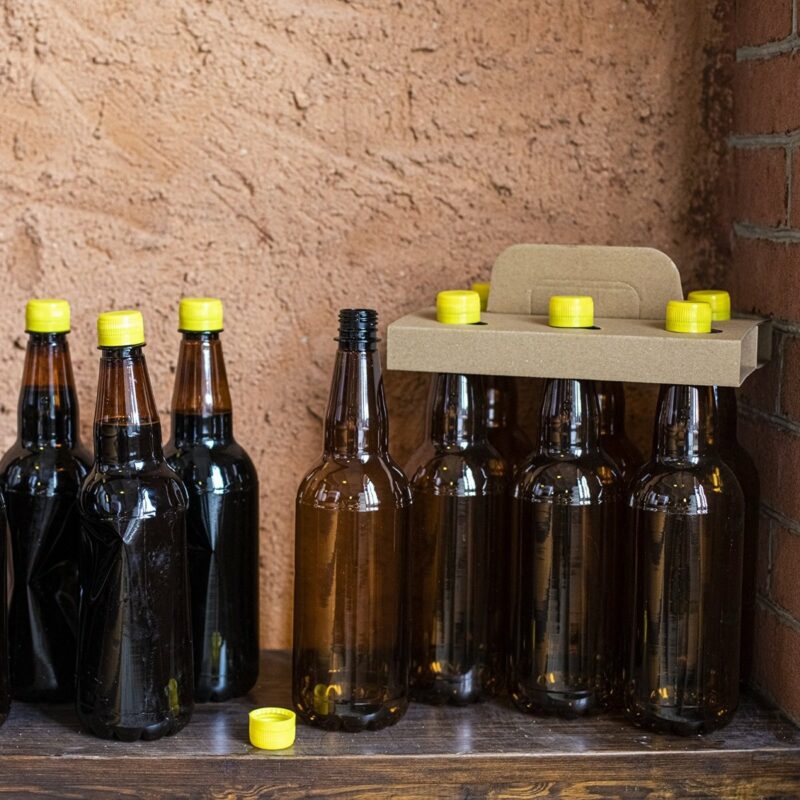 PET fľaše hnedej farby sú ideálne na skladovanie piva, cideru alebo iných šumivých nápojov bez obáv z ich rozliatia. Fľaše sú umiestnené vo vhodnom nosiči z pružného kartónu, vďaka ktorému ich môžete ľahko prenášať, keď sú prázdne, alebo ich skladovať v poriadku – akonáhle sú naplnené. Sada na veľké množstvo zlatistého moku obsahuje šesť 1 l fliaš, ktoré vám umožnia naplniť veľké množstvo domáceho piva!Každá fľaša je dodávaná so žltým skrutkovacím uzáverom s priemerom 28 mm, ktorý je dokonale prispôsobený fľaši, aby chránil vaše produkty pred rozliatím! Materiál, z ktorého sú fľaše vyrobené, je bezpečný a schválený na styk s potravinami – vrátane alkoholických nápojov! Fľaše sú opakovane použiteľné.