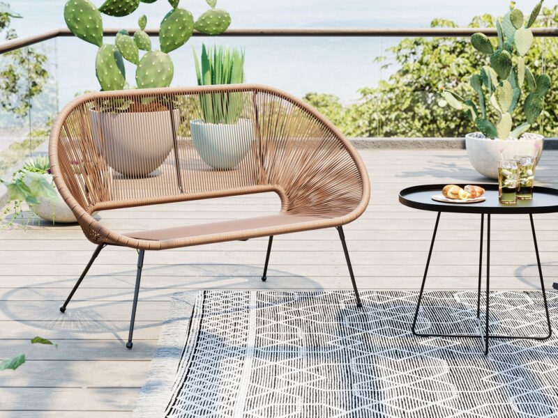 Štýlová lavička Acapulco spojuje eleganciu s odolnosťou a je ideálnou voľbou pre interiér aj exteriér.