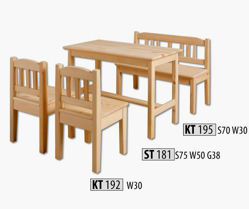 Detská lavička z masívneho borovicového dreva. Farebné prevedenie: prírodná borovica. Vhodná do detskej izby. Na obrázku je vyobrazená aj s detským stolom a stoličkou s operadlom, ktoré nie sú v cene.