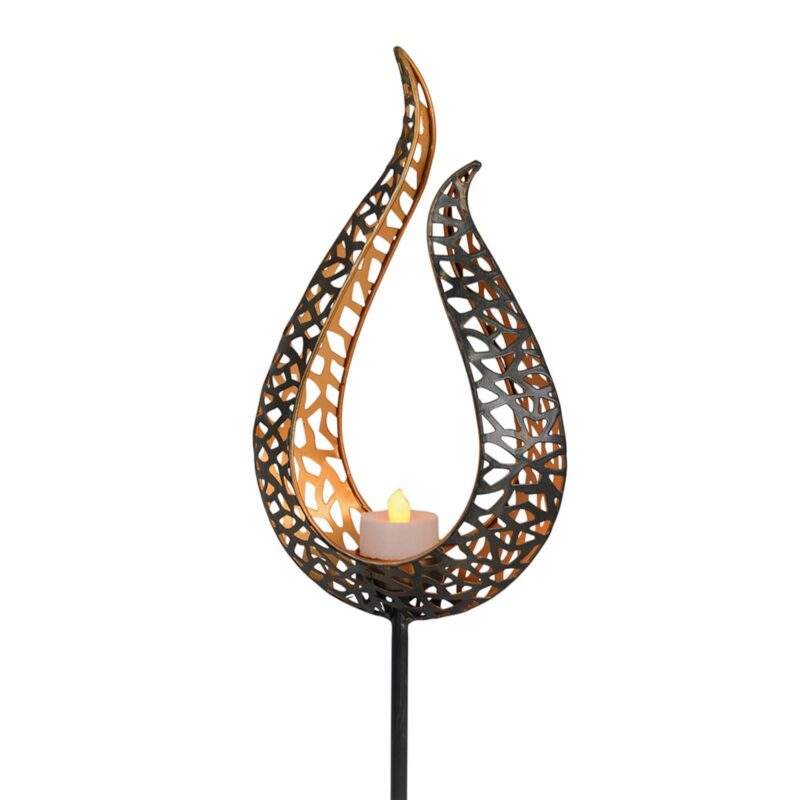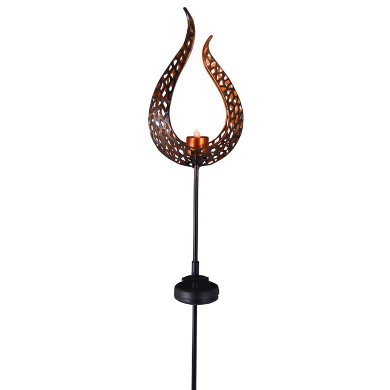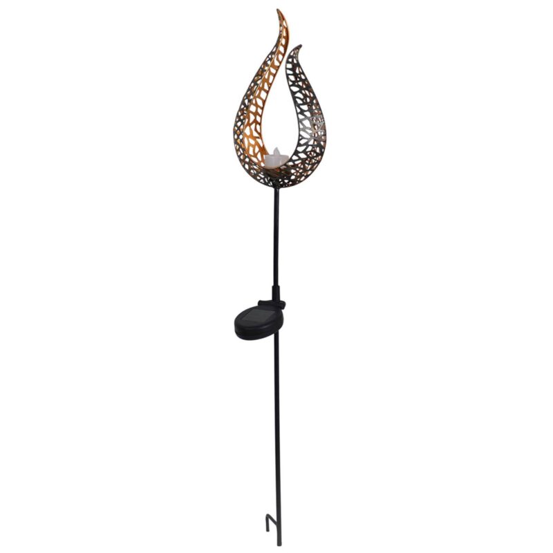 Pozemné bodové svetlo Aideen so solárnou a LED technológiou LED solarna lampa svetlo Aideen sa vyznačuje predovšetkým svojim dekoratívnym vzhľadom. Svojím plameňovým tvarom a zdrojom svetla, ktorý opticky pripomína čajové svetlo, vytvára vo vonkajšej oblasti harmonické akcenty. Vďaka hrotu zeme je možné Aideen ľahko umiestniť kdekoľvek na záhrade a vďaka zabudovanému solárnemu panelu je samostatné napájanie zbytočné. solarna lampa ako dekoratívny prvok na terase alebo ako diskrétne orientačné svetlo v blízkosti chodníkov.