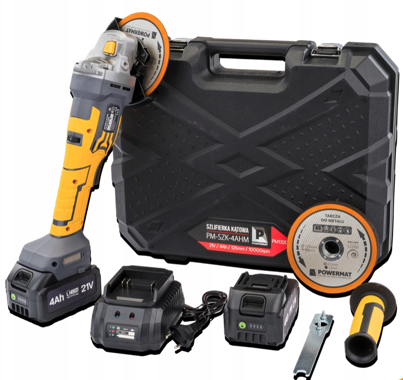 Akumulátorová uhlová brúska s príslušenstvom PM-SZK-4AHM