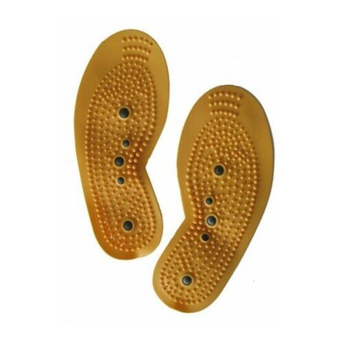 Využite vlastnosti magnetov v kombinácii s akupresúrou. Prispejte k pohodliu a dobrému pocitu z chôdze. Pomocou magnetov prokrvíte dolnej končatiny. Akupresúrna masáž vzpruží Vaše telo a zmierni únavu. Denným nosením vložiek predídete opuchnutým a unaveným nohám. Vložky môžete nosiť celý deň kedykoľvek, najmä ich oceníte pri športe, práci alebo námahe.timulací akupresúrnych bodov chodidiel docielite pozitívneho vplyvu na celé telo, pretože sa tým aktivujú nervové zakončenia, tým sa následne zlepší i funkcia jednotlivých orgánov. Každá vložka je vybavená piatimi magnetmi.Veľkosť jeuniverzální 36-40, zastrihnutím možno upraviť do požadovanej veľkosti.