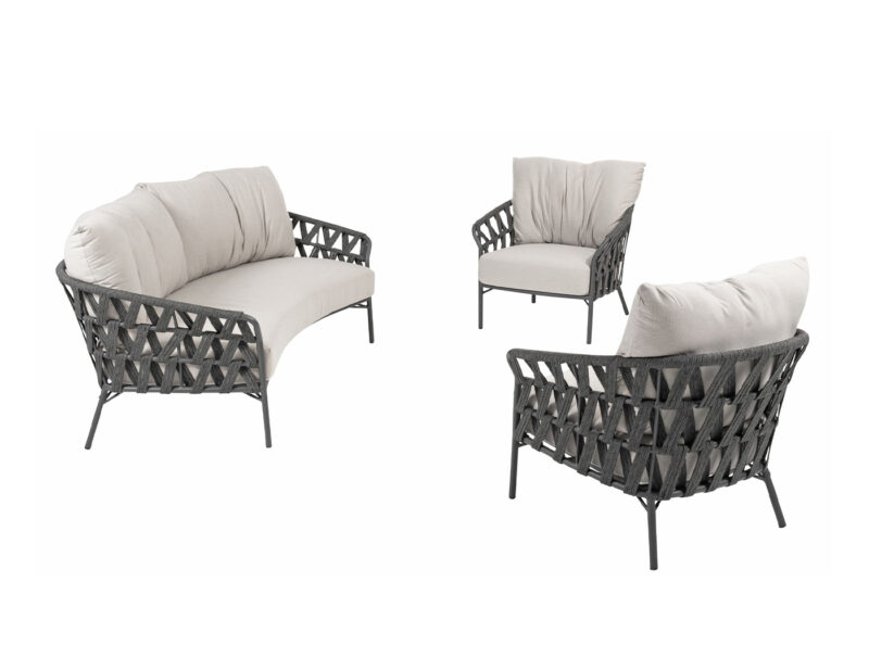 Albareto sedacia súprava spája remeselnú eleganciu a moderný dizajn. Hliníková konštrukcia v kombinácii s hrubým rope výpletom vytvára štýlové posedenie, ktoré oživí vašu terasu či záhradu.