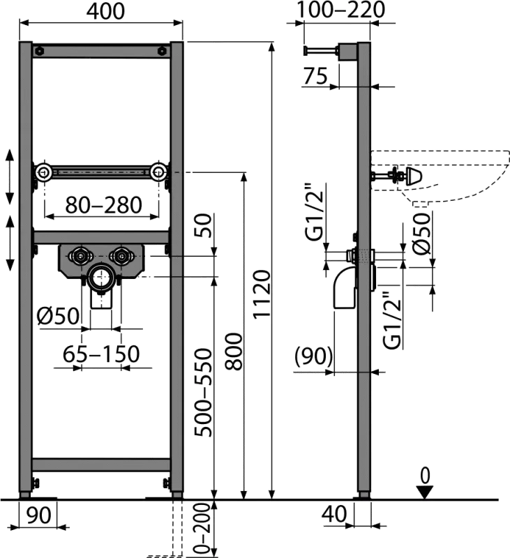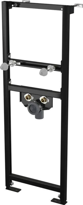 Alcadrain Montážny rám pre umývadlo použitie Pre závesné umývadlo Pre montáž stojankové armatúry Pre montáž pred nosnú stenu alebo do sadrokartónovej konštrukcie normy STN EN 14688 technické parametre Záťažová skúška: 150 kg vlastnosti Samonosný rám s C-profilom Výškovo nastaviteľné priečky Nastaviteľné výsuvné nohy v rozmedzí 0-200 mm Rozstup upevnenie umývadla 80-280 mm Rozstup prívodu vody 65-150 mm Materiál: kov ošetrený práškovou farbou rozsah dodávky rám Fixačné set: vrut priemer 8 × 60 – 4 ks, hmoždinka priemer 12 – 4 ks Fixačný set pre uchytenie umývadla: skrutka M10 × 100 – 2 ks Krytky fixačného materiálu Pripojovacie šróbenie G1 / 2 „-G1 / 2“ Odpadové koleno HT50 s tesnením(GT) Ean: 8595580551544