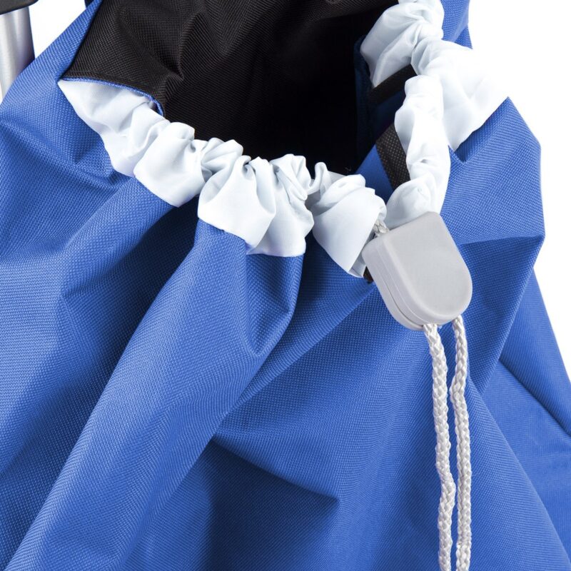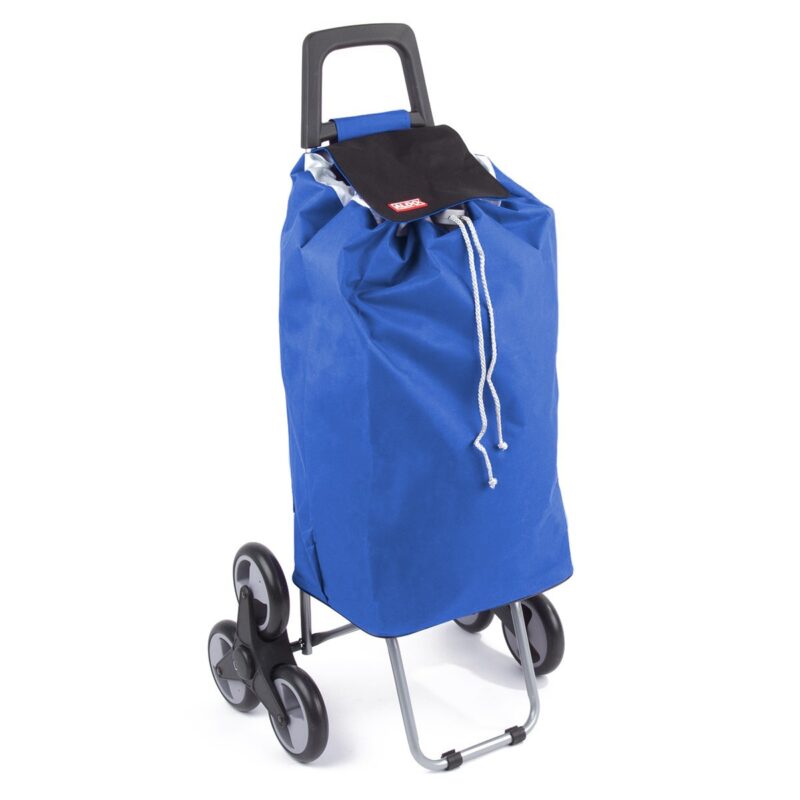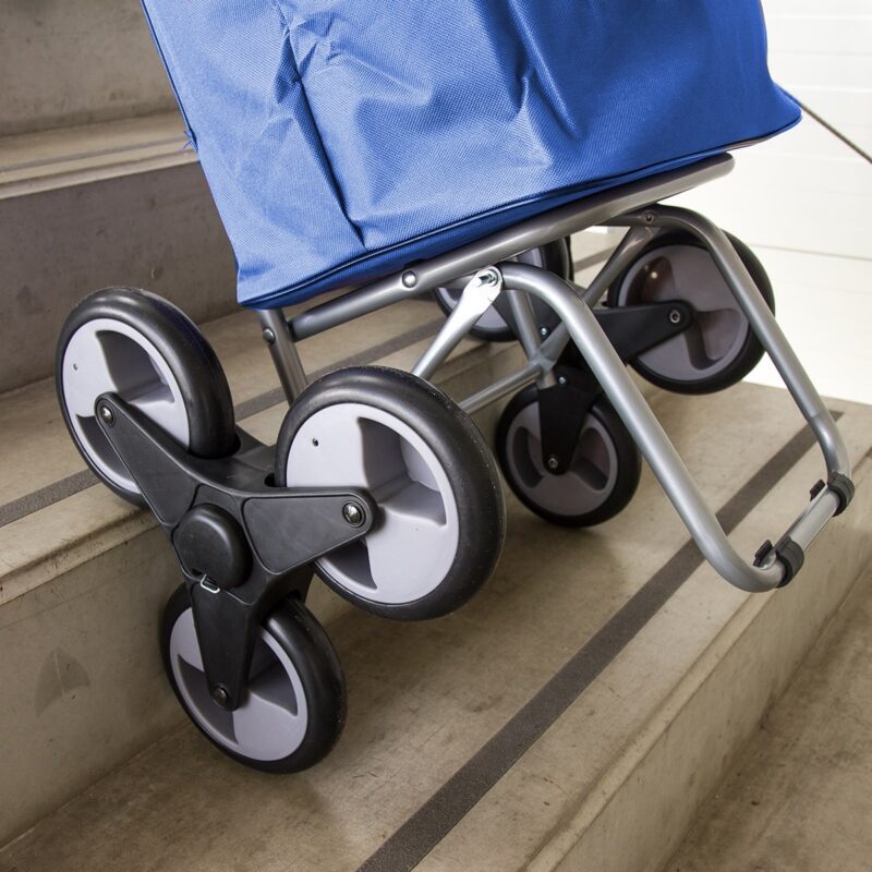 Nechcete už ďalej nosiť ťažké nákupy v rukách, bývate na vyšších poschodiach alebo nemáte výťah? Pomôže vám táto nákupná taška opatrená celkom 6 kolieskami, ktoré vám výrazne uľahčia manipuláciu do schodov. Taška je ukotvená na hliníkovej konštrukcii, možno ju však ľahko odňať. Uzatváranie je riešené sťahovacou šnúrkou a okrem objemného hlavného vrecka má taška aj menšie vrecko na zips na zadnej strane.