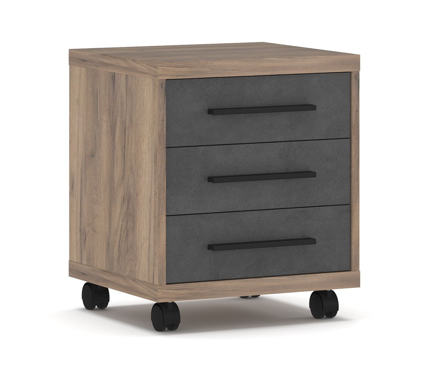 ALFA je moderný sektor v industriálnom štýle, ktorý sa veľmi hodí na zariadenie pracovne, či detskej a študentskej izby.Pevné kovové nohy podčiarkujú loftový ráz tohto nábytku. Je vyrobený z kvalitného LTD materiálu. Farebné prevedenie dub tabacco-matera. Malá komoda má 3 zásuvky, je vhodná ako prídavný prvok pod pracovný stôl.Rozmery (ŠxVxH): 44 x 61,5 x 40 cm.V našej ponuke nájdete široký výber prvkov kolekcie ALFA, vďaka ktorej si zariadite detskú izbu či kanceláriu štýlovo a prakticky.Dodávame v demonte.