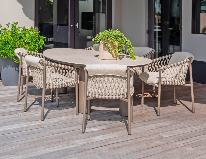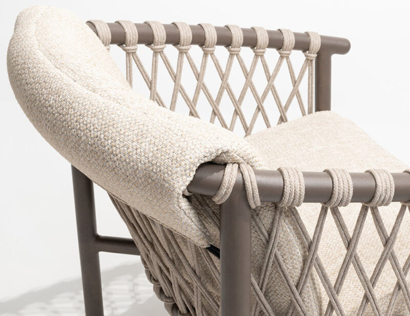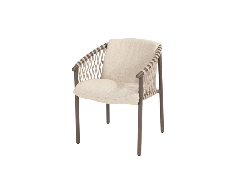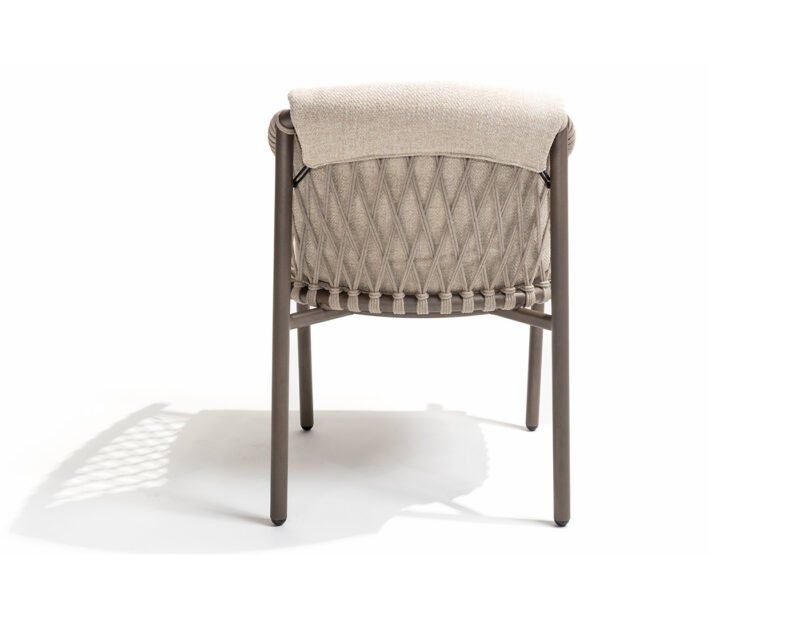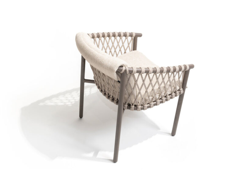 Allora jedálenská stolička ponúka elegantné spojenie rope výpletu a hliníkovej konštrukcie, čím zabezpečuje štýlový vzhľad a stabilitu. Pohodlné čalúnenie z nej robí ideálnu voľbu pre vaše vonkajšie stolovanie.