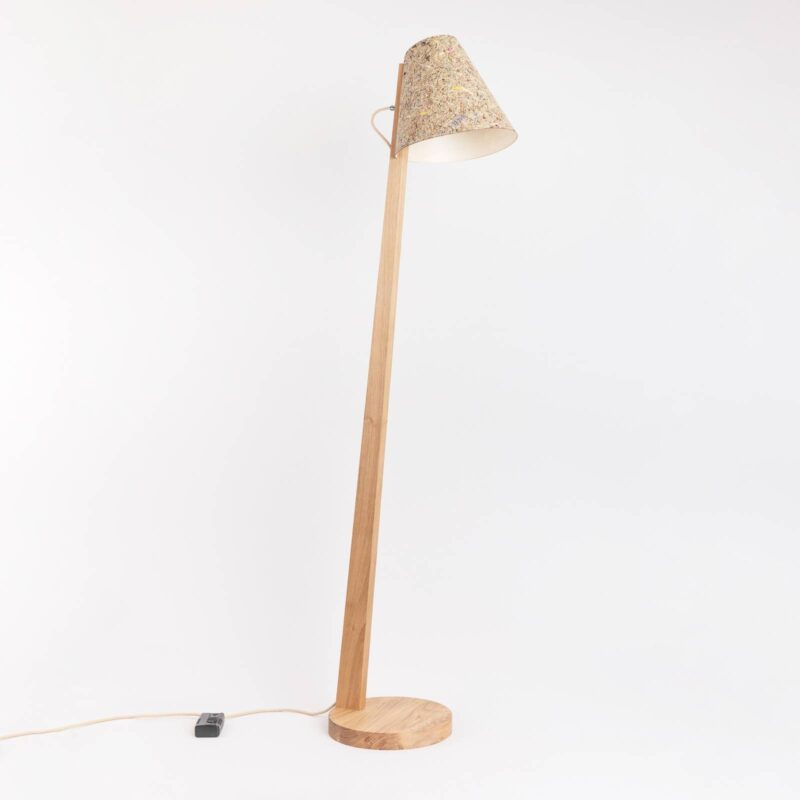 Stojacia lampa 1411 s výnimočným tienidlom vo vzhľade tirolskej alpskej lúky S touto stojacou lampou z dizajnového radu 1411 sa do obytného priestoru dostane atmosféra tirolských Álp. Zakrivené tienidlo lampy je pokryté trávami a kvetmi z tirolských horských lúk. Rovný rám s okrúhlou základňou je vyrobený zo svetlého dubového dreva. Kábel dotvára prírodný koncept vďaka svojmu plášťu z jutových vlákien. Výroba je úplne vegánska a udržateľná. Na tento účel má spoločnosť Almut von Wildheim prírodné suroviny spracované precíznou ručnou prácou. – Vybavené stmievacím spínačom