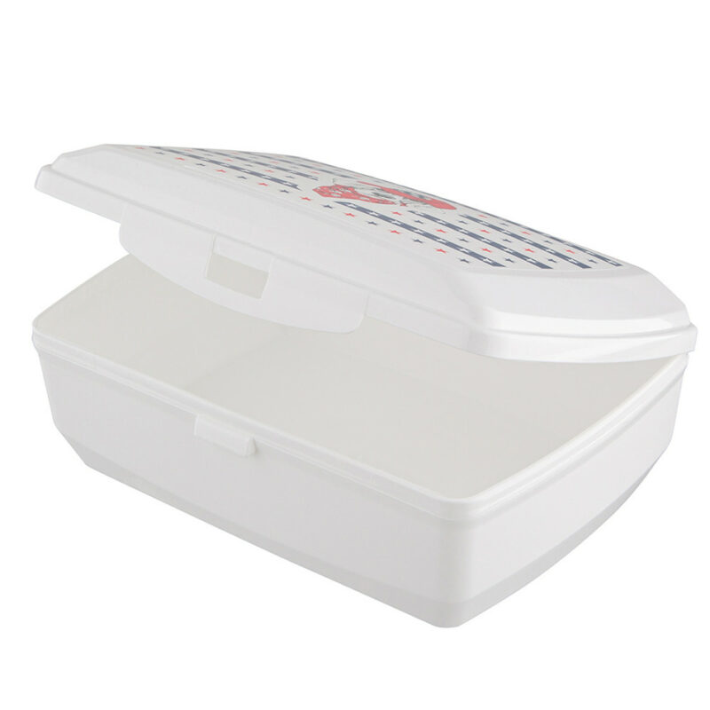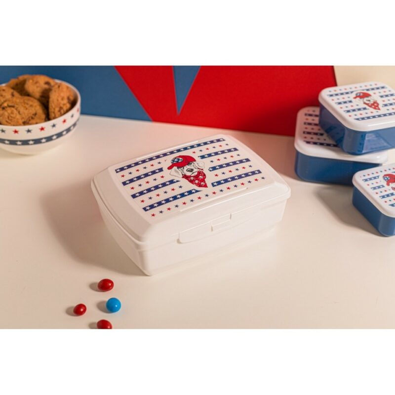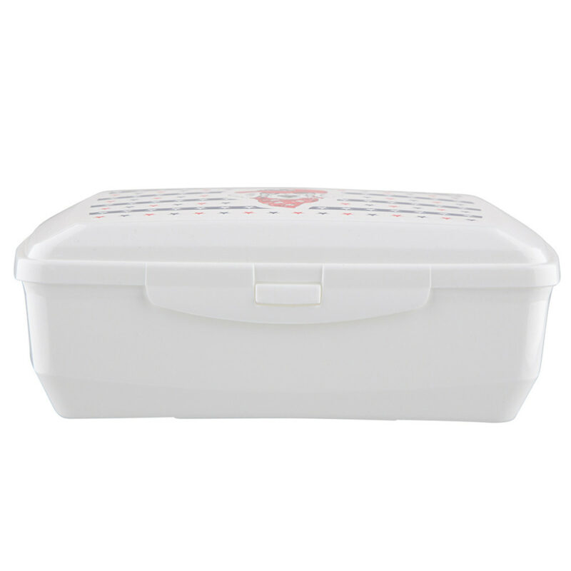 Plastový desiatový box s objemom 1 l je vhodný ako na veľký sendvič, tak malé občerstvenie ako sú tyčinky, zelenina či ovocie. Box je vyrobený z bezpečného plastu, ktorý neabsorbuje chuť ani pachy iných potravín. Uzatváranie pomocou jedného klipu. Pre dlhšiu výdrž potlače neodporúčame umývať v umývačke riadu.