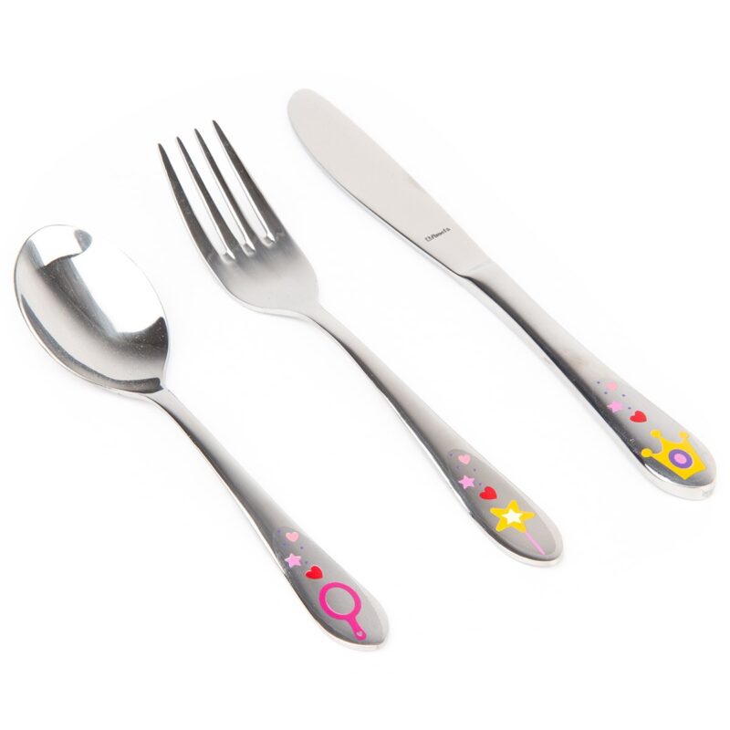 Kvalitné detské príbory značky Amefa s roztomilým princeznovským motívom sú špeciálne vyvinuté pre malé detské ručičky. Vyrobené sú z vysoko kvalitnej nehrdzavejúcej ocele. Vhodné pre deti od 3 rokov.Sada obsahuje: