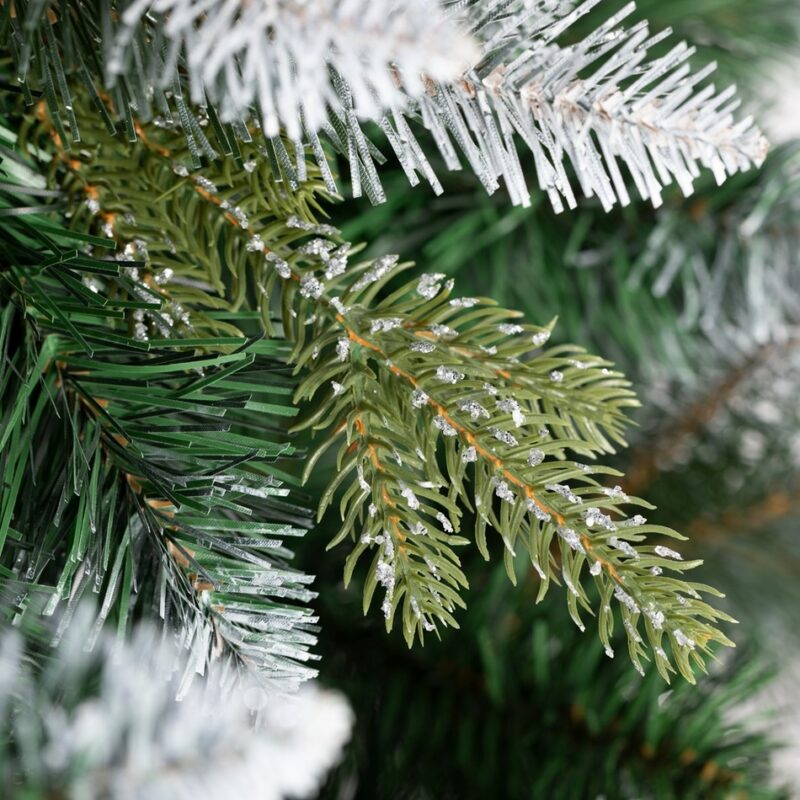 Dávno sú preč doby, kedy umelý stromček pripomínal živý len vzdialene. Tento vyzerá ako naozajstná borovica, konce vetvičiek sú zasnežené a hlavne pod ním nemusíte každý deň upratovať hromady opadaného ihličia. Jednotlivé poschodia má rastené blízko nad sebou, čo zaisťuje dostatočnú hustotu.